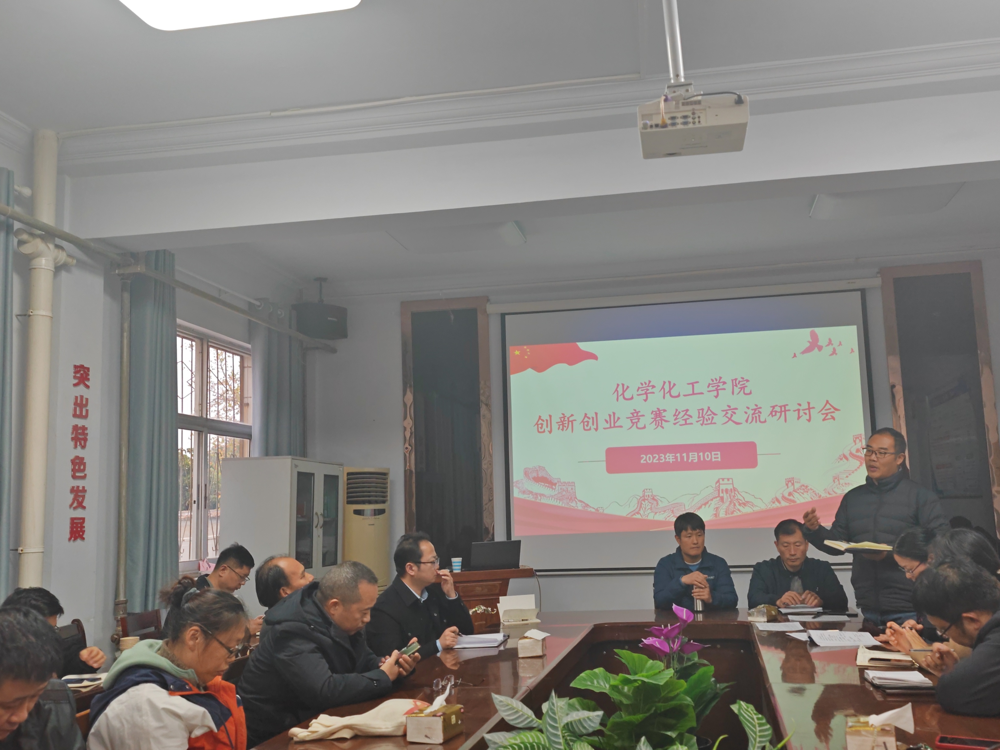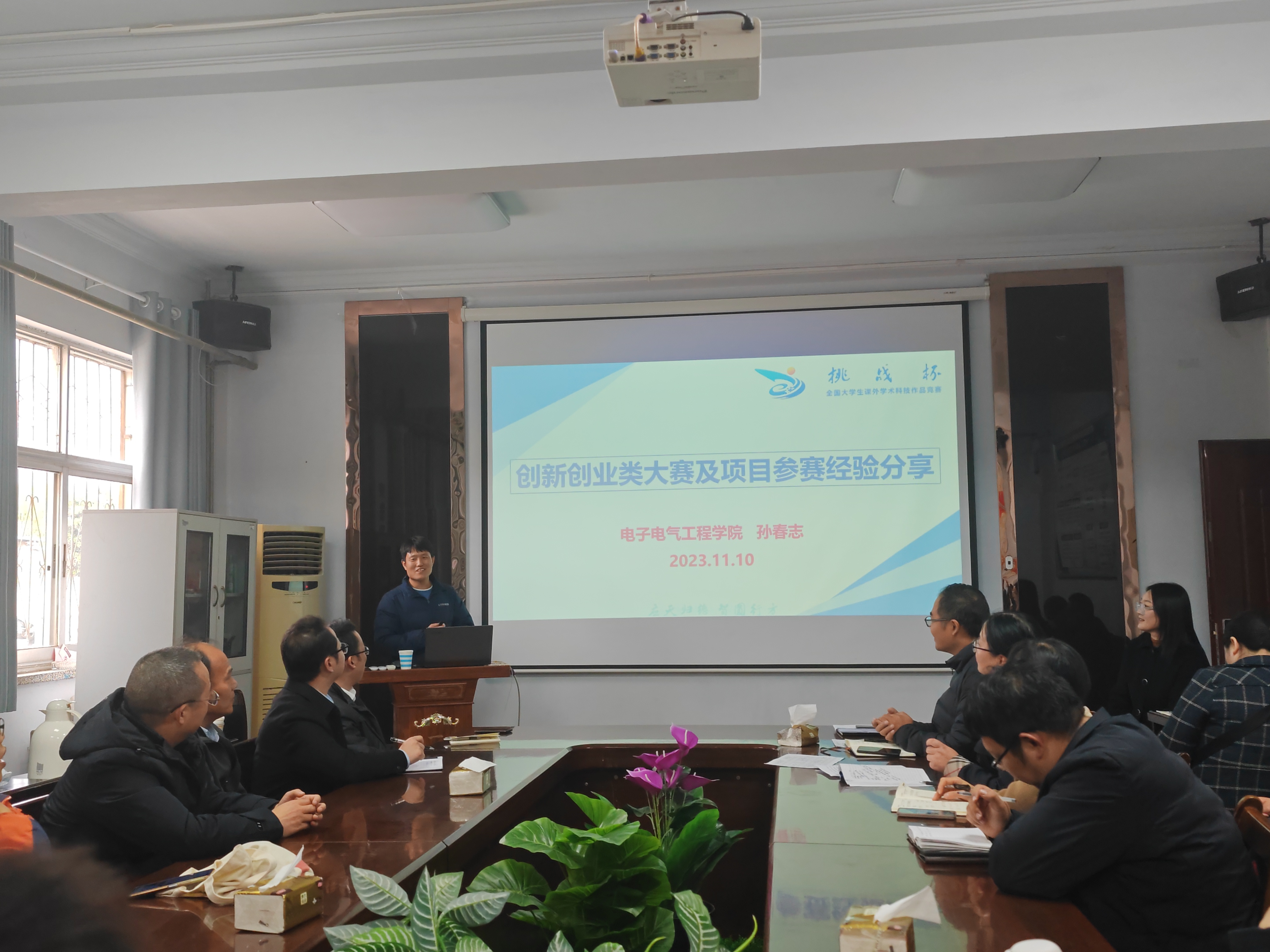 为培养学生创新创业意识,提升大学生创新创业能力,培养适应创新型国家建设需要的高水平创新创业人才。11月11日,beat365英国官网网站在7号楼学院会议室举行创新创业类竞赛经验交流研讨会,本次研讨会特别邀请了电子电气工程学院孙春志,硕士生导师,副教授,河南硕拓智能科技有限公司技术顾问,第七届、第八届中国国际互联网+大学生创新创业大赛国赛铜奖指导教师进行经验分享,学院全体领导班子成员及全体教职工参加研讨会,研讨会由学院党委副书记张颜梅主持。
