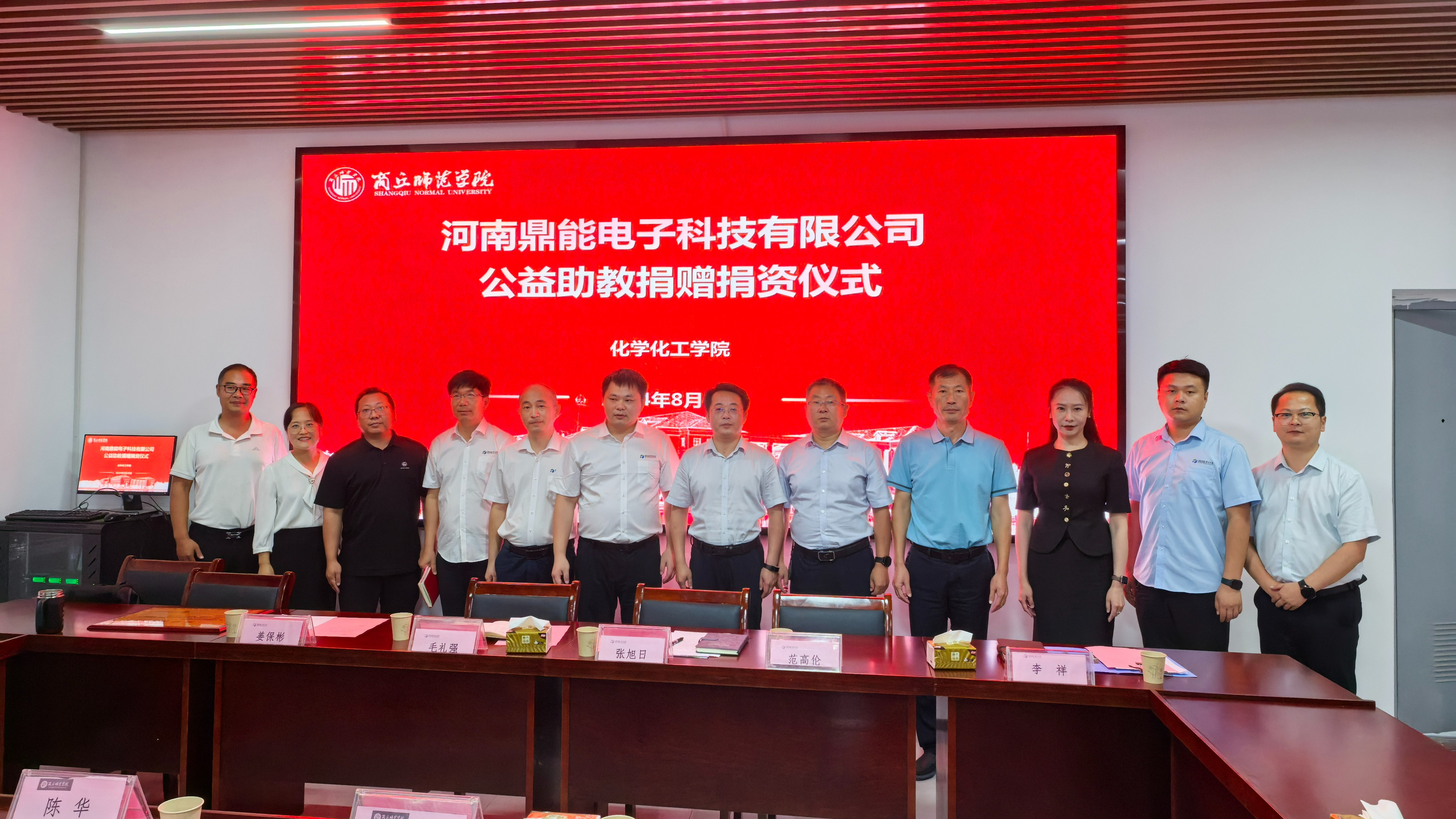 8月30日下午,beat365英国官网网站“鼎能科技奖学金”捐赠仪式在睢阳校区beat365英国官网网站会议室举行,副校长翟滨出席会议,代表学校接受捐赠,并向河南鼎能电子科技有限公司总经理张旭日颁发了捐赠证书。校地合作与服务中心主任陈华、学生处副处长袁慧,河南鼎能电子科技有限公司和beat365英国官网网站相关人员参加会议。会议由beat365英国官网网站党委书记李海涛主持。