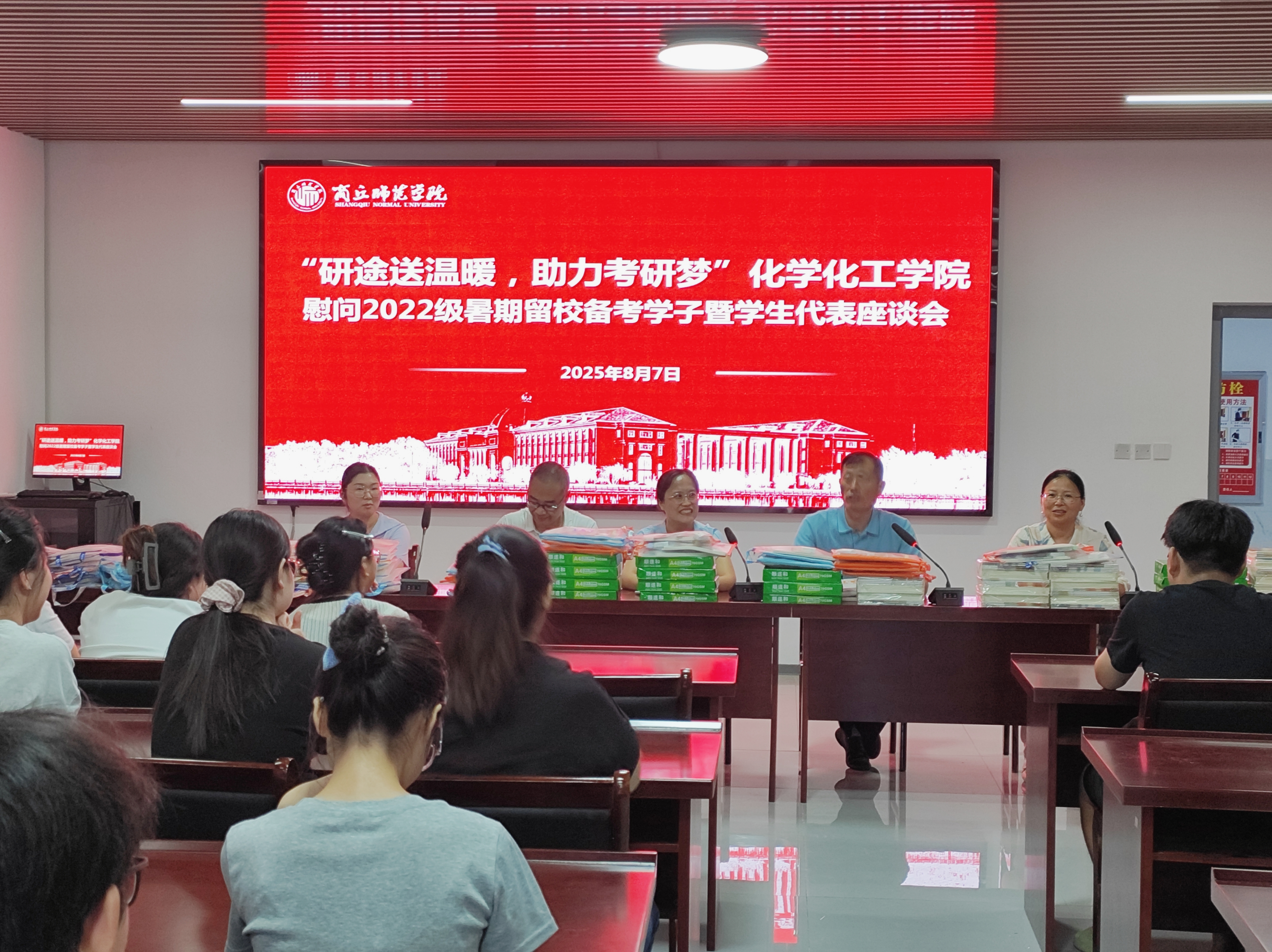 为关心关爱暑期留校备考学生,进一步助力考研学子坚定信心、安心备考,8月7日,beat365英国官网网站开展“研途送温暖,助力考研梦”慰问2022级暑期留校考研学生暨学生代表座谈会。学院领导班子成员、2022级辅导员王舒欣及留校备考学生代表参加座谈,会议由学院党委副书记张颜梅主持。