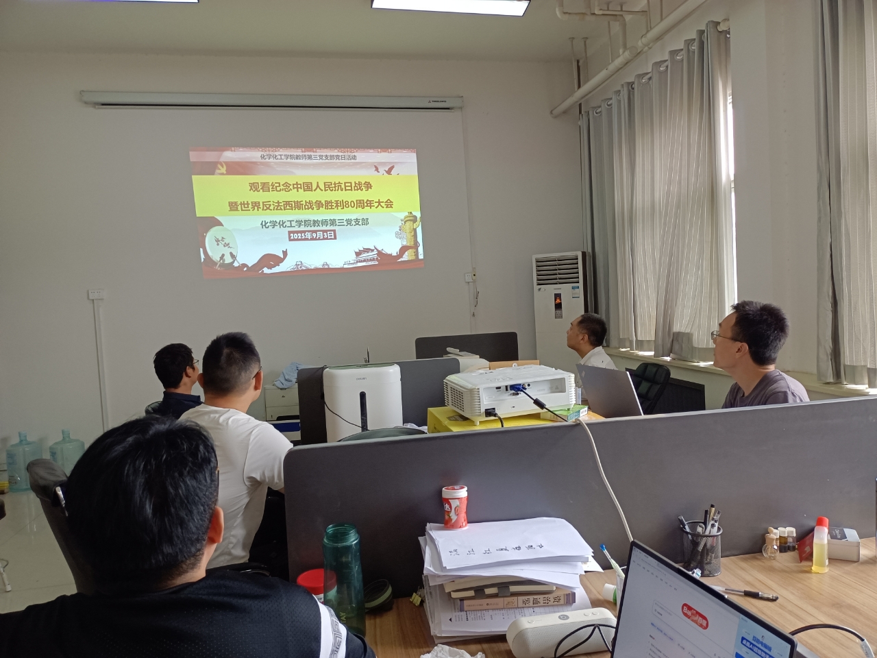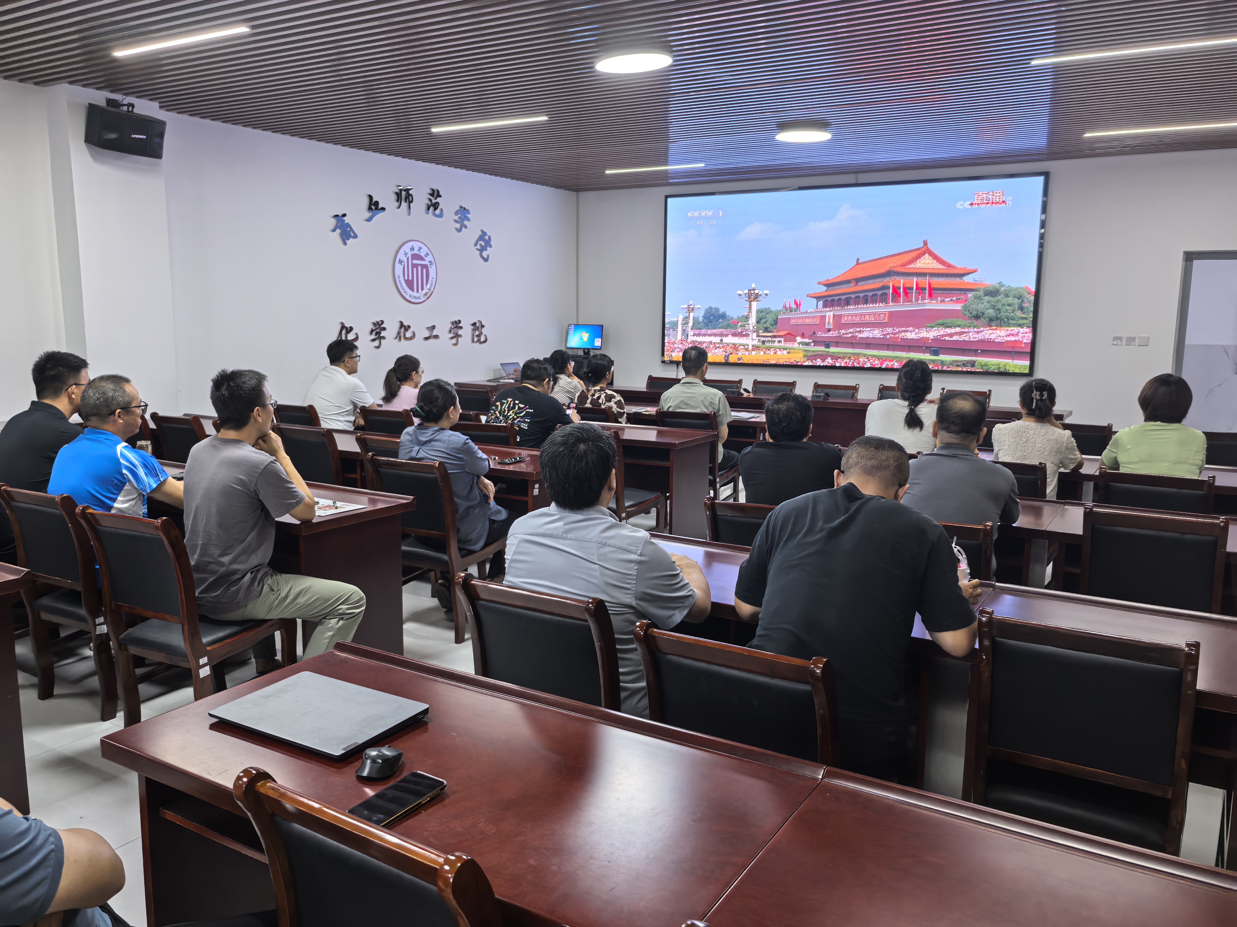 观看过程中,师生党员全神贯注,精神饱满,随着直播镜头“真听、真看、真感受”,沉浸式地参与这场庄严肃穆、激荡人心的纪念盛典。当大国仪仗昂首阔步、受阅方队整齐列阵、一件件新型武器装备震撼登场,全面展现了新时代人民军队的强大战斗力与精良素质。大家纷纷表示,从中切实感受到国家科技实力和国防力量的显著跃升,更加坚定了爱党爱国的信念与奋发有为的责任感。