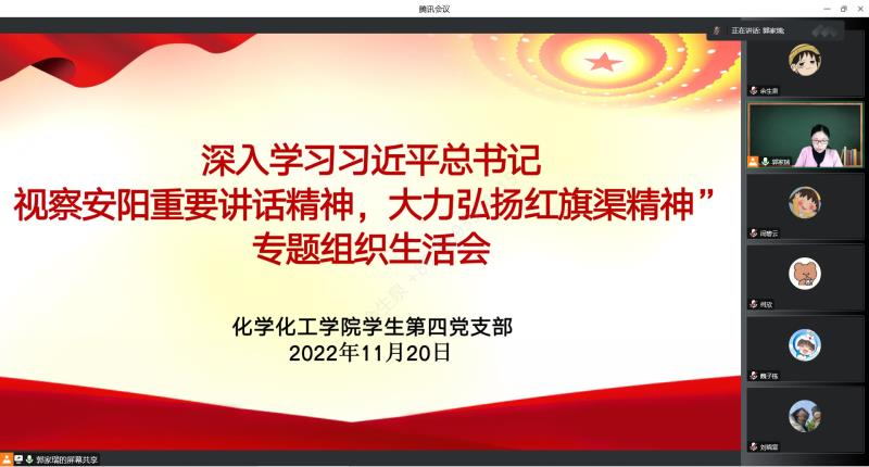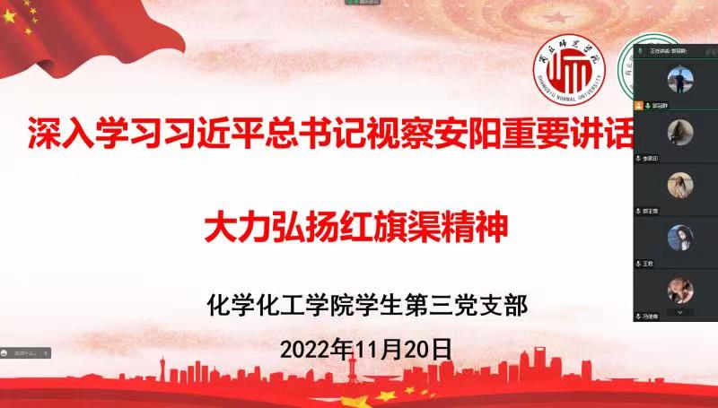 各支部书记通过领学习近平总书记视察安阳重要讲话,组织观看专题片《根脉——红旗渠精神》、《红旗渠之问》,党员代表讨论交流等环节,带领党员深刻学习领会“红旗渠精神同延安精神是一脉相承的,是中华民族不可磨灭的历史记忆”“年轻一代要继承和发扬吃苦耐劳、自力更生、艰苦奋斗的精神,摒弃骄娇二气,像我们的父辈一样把青春热血镌刻在历史的丰碑上”“社会主义是拼出来、干出来、拿命换来的,不仅过去如此,新时代也是如此”等重要论述,进一步促使学生党员把红旗渠精神转化为担当作为、矢志奋斗的精气神。