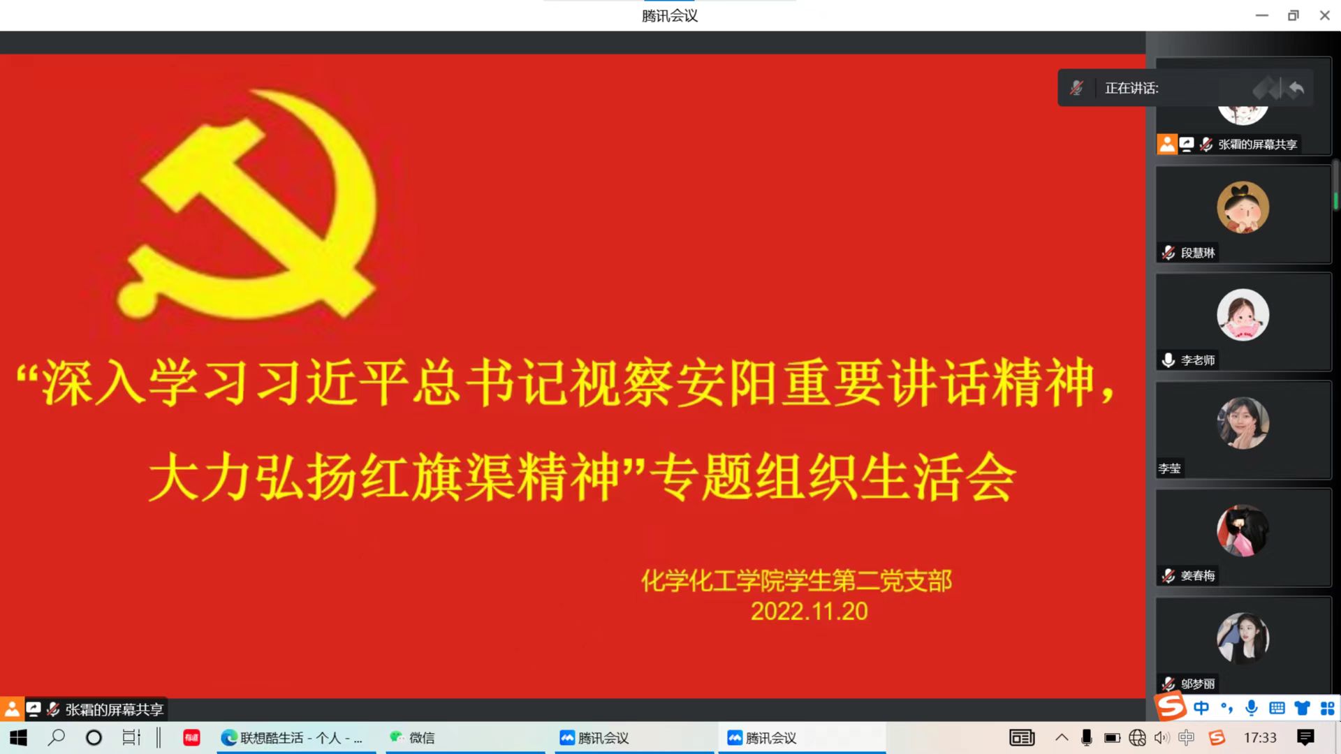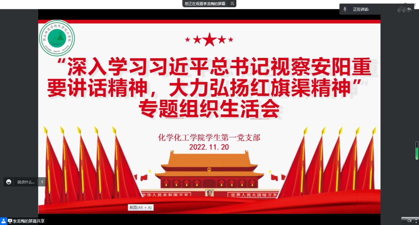 为深入学习贯彻党的二十大精神和习近平总书记视察河南安阳重要讲话精神,11月20日,beat365英国官网网站学生党支部召开了“深入学习习近平总书记视察安阳重要讲话精神,大力弘扬红旗渠精神”专题组织生活会,各党支部书记主持,全体党员参加。
