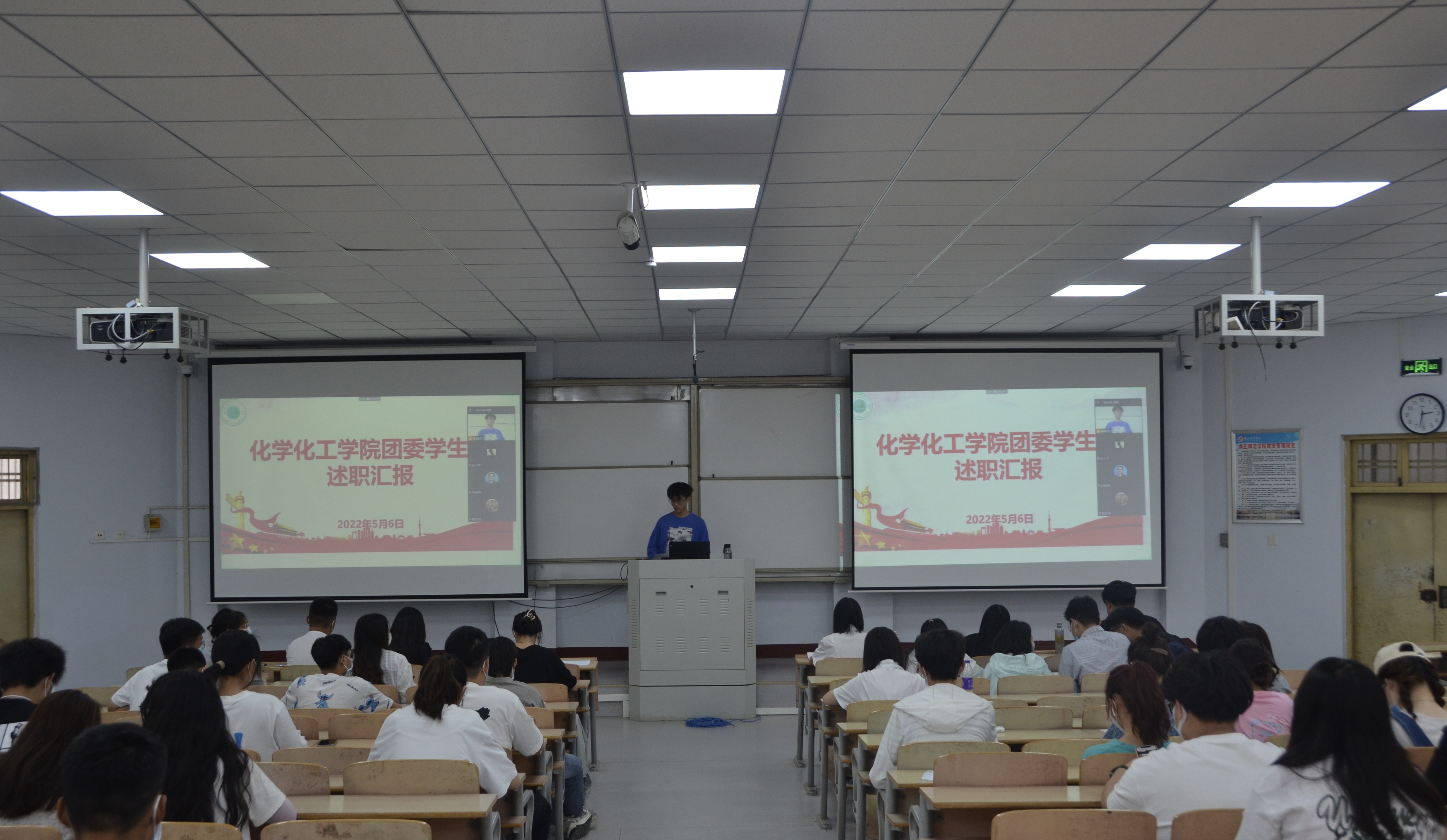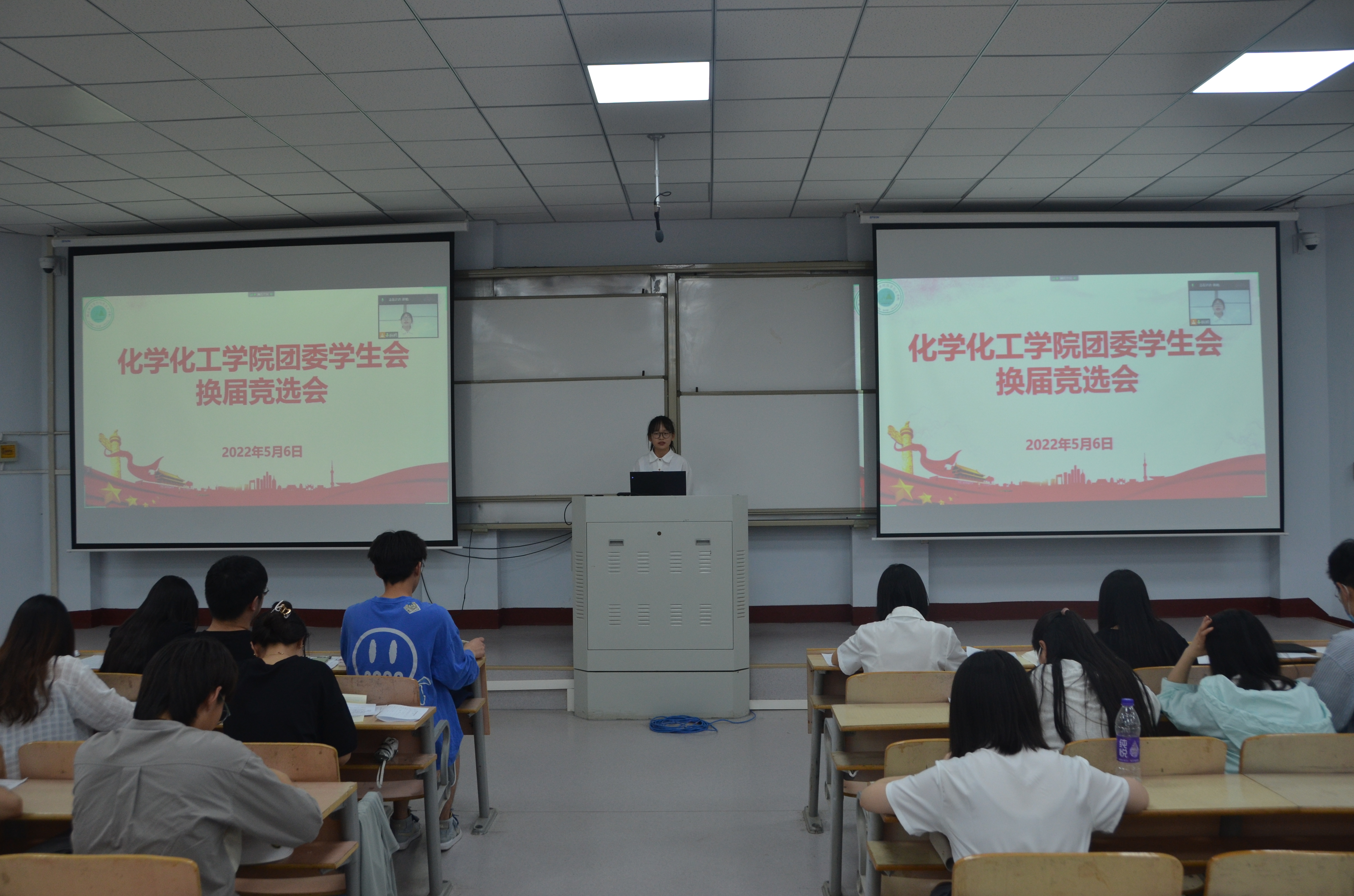 第一阶段,现任团委学生会各部门负责人汇报了任职以来的工作情况,存在的问题以及改进的措施,参会人员进行了现场评议。第二阶段,进行换届竞选,参选成员围绕自身优势、对部门工作的认知以及对工作的展望等方面进行演讲和答辩。选手们沉着应对,表现出色。