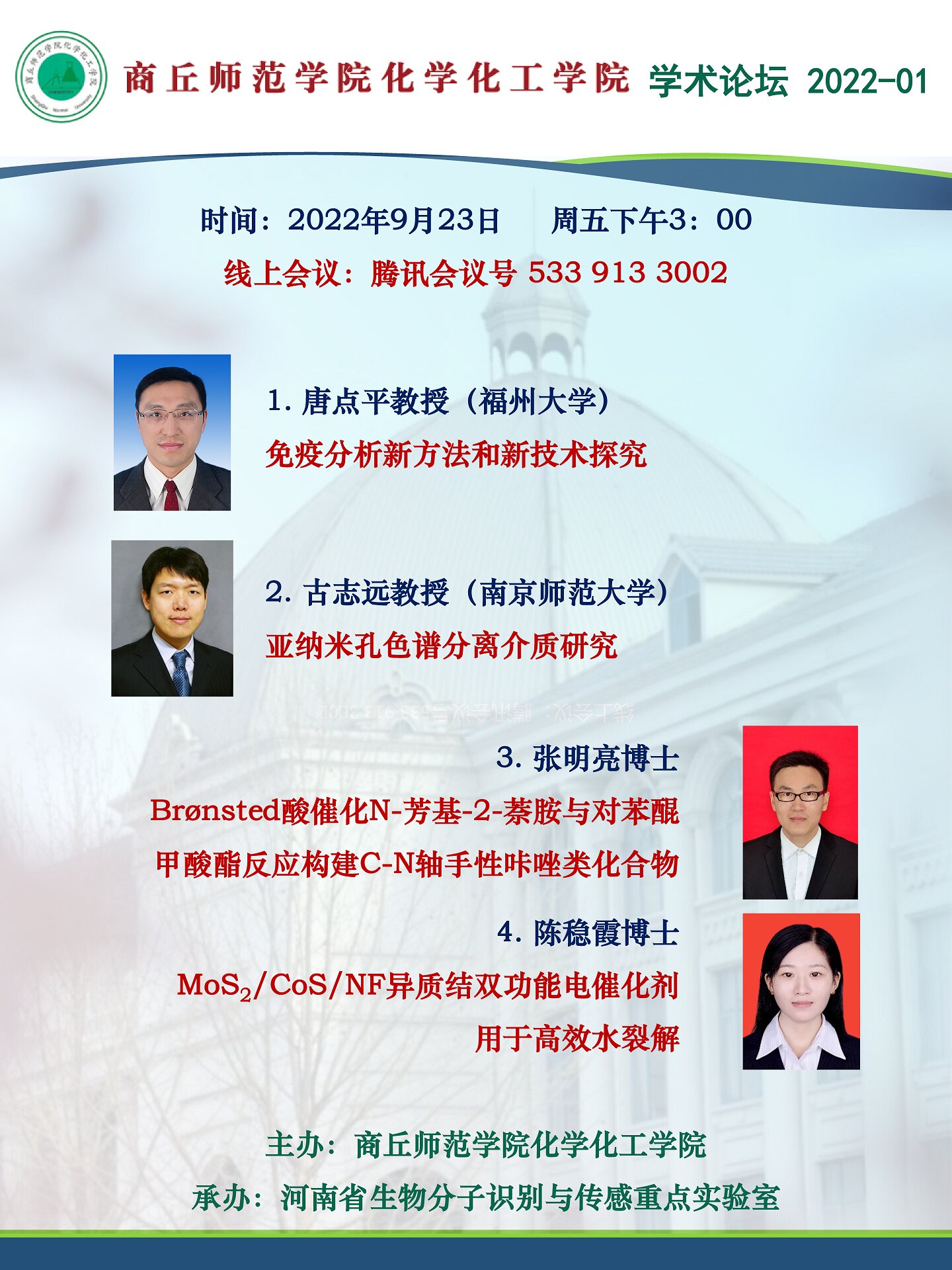 1、唐点平教授(福州大学):免疫分析新方法和新技术探究;
