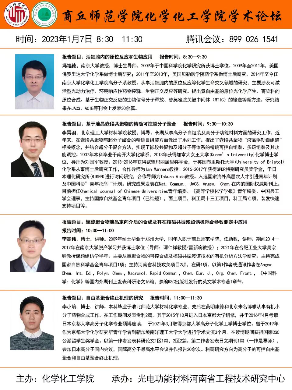 1. 冯福德教授(南京大学):活细胞内的原位反应和生物应用;