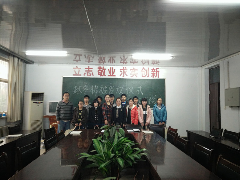 为弘扬中华民族的传统美德,加大困难学子的资助力度,2015年11月17日下午2点30分,beat365官网与7号楼会议室举行了越冬棉被发放仪式,副院长刘瑛、团总支书记李龙梅、辅导员郭家瑞、李可刚老师应邀出席棉被发放仪式并为受资助学生发放棉被。仪式由李龙梅老师主持。