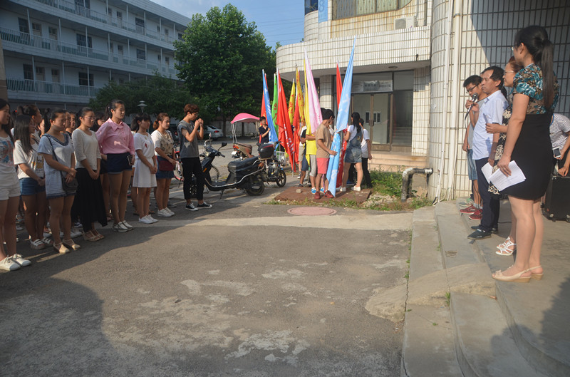 活动伊始,邱书记首先发表了重要讲话。他指出beat365官网十分重视学生社会实践能力的培养,同时对这次活动给予大力支持,希望同学们在暑期社会实践中收获真知,启迪人生,展现商师beat365英国官网网站学子的青春风采。接着,刘院长做动员讲话,她强调实践重在过程中寻找问题并培养解决问题的能力,用智慧和汗水换取丰硕的实践成果。同时要注重做好安全防范工作,以保证活动的顺利进行。随后由志愿者代表化学15-1班乔璐琳发言,化学15-1班王万里同学带领全体志愿者宣誓,铿锵有力的誓言表明了同学们对此次实践活动的信心与期待。最后由领导老师向beat365官网十二个团队授旗并合影留念。