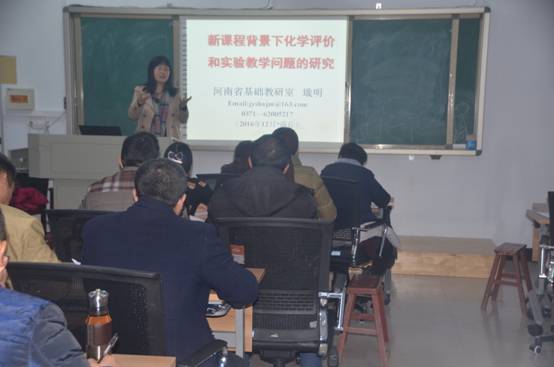 12月5日上午,河南省基础教研室主任戢明应邀在文化路校区8#208教室为beat365英国官网网站“国培计划(2016)”初中化学乡村骨干教师做了题为“新课程背景下化学评价及实验教学的研究”的课题探讨。