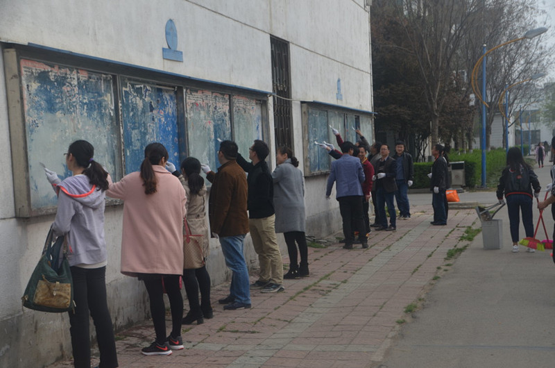 4月7日下午4:00,由beat365官网教师青年志愿者组成的团队于beat365官网文化路校区展开了教师清扫校园活动。在beat365官网党总支书记韩忠民同志和副书记刘瑛同志的带领下,beat365官网全体青年教师志愿者及团总支学生会成员参加了活动。