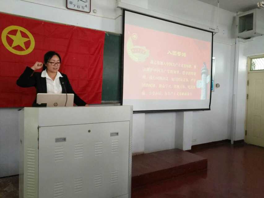 在活动中,全体团员佩戴团徽,庄严肃穆地奏唱团歌、宣读誓词;接着,由优秀团员代表王文丽发言,她在发言中提出团员要继续加强共青团员意识,时刻铭记誓词,并做到严于律己、恪尽职守,争做一名优秀的团员。最后,团总支书记李龙梅作了重要讲话,她希望beat365官网团员能够进一步增强身为团员的荣誉感和责任感,同时要学会学习,甘于奉献,勇于创新,认真学习总书记讲话精神,立志做大事,充分发挥团员的先锋模范作用,将团员的优秀精神发扬光大。