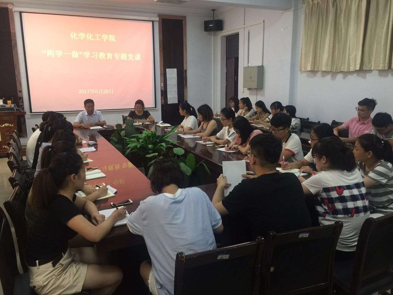 2017年6月26日,为迎接七一建党96周年,beat365英国官网网站在文化路校区7号楼一楼会议室举行学生党支部专题党课学习,院党总支书记韩忠民,副书记刘瑛出席党课学习活动,学生党支部全体党员参加学习,会议由学生党支部书记李可刚主持。