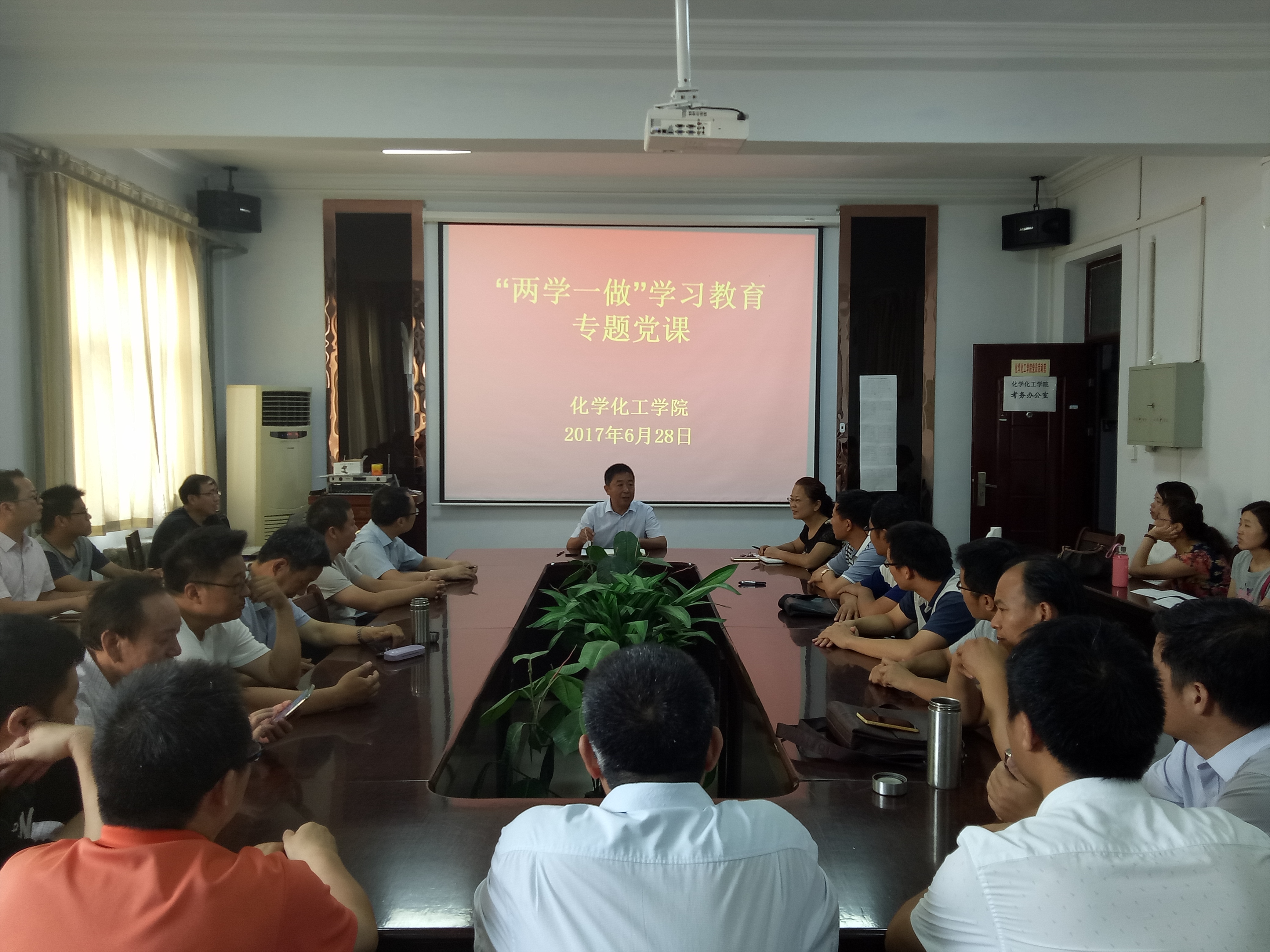 2017年6月28日,为迎接七一建党96周年,beat365英国官网网站党总支在文化路校区7号楼一楼会议室举行“两学一做”学习教育专题学习《关于新形势下党内政治生活的若干准则》(简称《准则》)和《中国共产党党内监督条例》(简称《条例》)党课。院党总支书记韩忠民,副书记刘瑛,副院长孟团结出席党课学习活动,全体教工党员参加了学习,党课由韩忠民书记主讲。