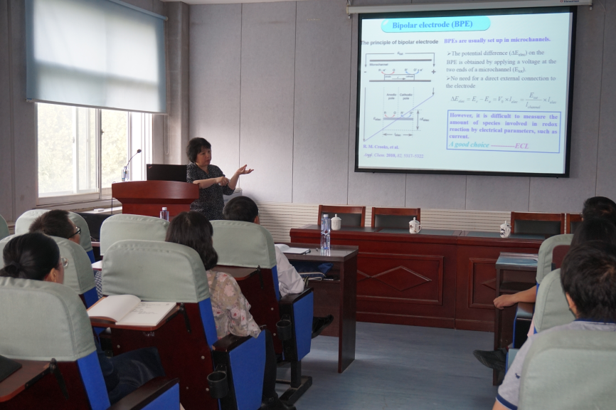 聘任仪式结束后,徐静娟教授在文化路校区化学实验楼311学术报告厅为beat365英国官网网站师生作了题为《电致化学发光分析新方法研究》的学术报告,报告会由beat365英国官网网站院长瞿鹏主持。报告会上,徐静娟首先简要介绍了电致化学发光的基本原理、特点与应用。接着徐教授从纳米晶表面态、电极基底材料及共反应剂的构建与选择;电极电化学反应的引入;光辐射-共振能量体系的应用三方面结合自己课题组的相关研究工作,对高效新型的电致化学发光检测体系的构筑进行了系统的阐述。最后,徐教授介绍了自己课题组在比率式电致化学发光生物分析方面的最新研究进展。徐教授的报告系统严谨,讲述生动清晰,对beat365官网beat365英国官网网站相关老师的研究工作具有重要的指导与启迪意义。随后,徐静娟教授还与部分老师进行了互动交流。
