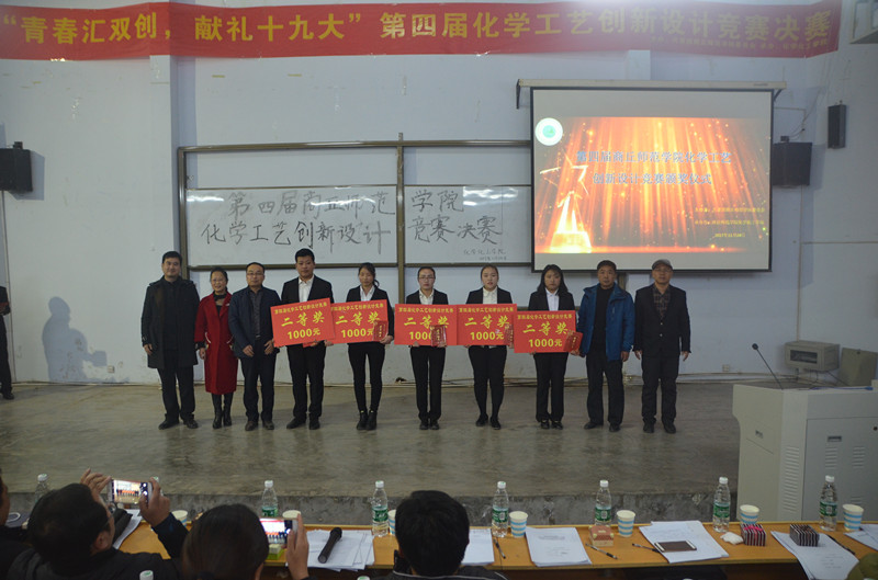 经过初赛、复赛的激烈角逐,共有八支团队进入决赛,各团队负责人进行了汇报和答辩。每支团队的讲演都十分精彩,不仅有PPT的演示,还有视频的展示,使到场领导老师赞不绝口。比赛中还有抽奖环节、改编的《青花瓷》歌曲演唱表演和化学知识抢答比赛,带动并活跃了整个会场的气氛。最终,评出了一二三等奖,其中皂动生活——打“皂”自然之美、“会呼吸”的涂层和新型氮杂化卡宾钯化合物的设计与催化性能的研究获得了一等奖,每个团队获得2000元的奖金。领导老师分别为获奖选手颁发了荣誉证书和奖金。比赛后beat365官网孟团结副院长从专业的角度对比赛作了点评,他对beat365官网学生提出要求与建议,他指出beat365官网学生务必要把化学基础知识掌握牢固,学会应用所学的化学知识在相关行业、领域做出一定的成绩。最后,创新创业学院院长周鲲鹏对比赛进行了总结点评,他对活动环节的严密性、活动的扣题性、参与团队的分工合作精神和化学工艺研究方向等几个方面给予了很大的肯定和赞扬,并提出了宝贵的建议。