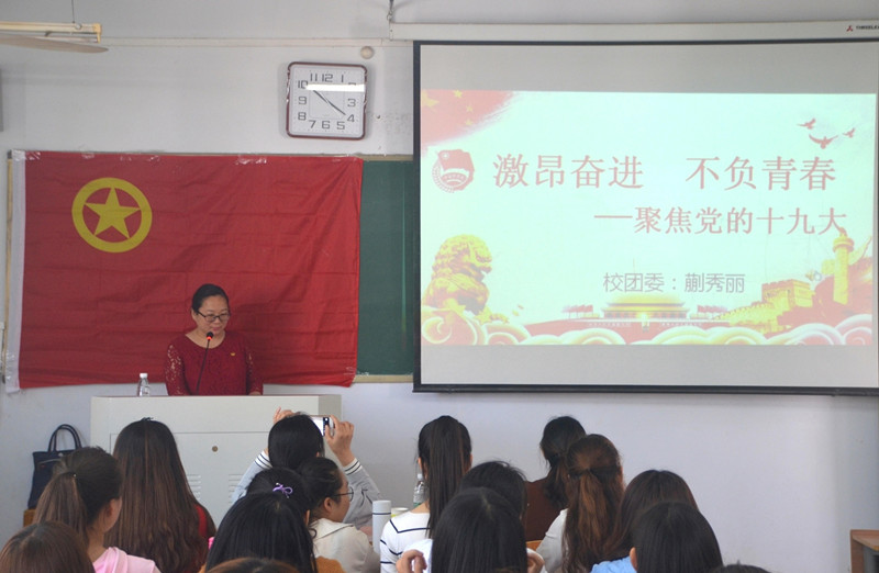 4月19日上午十点,beat365英国官网网站于文化路校区1#411教室开展了“激昂奋进,不负青春——聚焦党的十九大”主题团课教育活动,主讲人为beat365官网团委副书记蒯秀丽。17级辅导员郭家瑞老师及新能源16-1团支部全体同学参加了活动,活动由beat365英国官网网站团总支书记李龙梅主持。