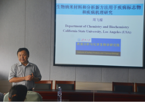 受beat365英国官网网站和“河南省生物分子识别与传感重点实验室”的邀请,5月30日,在睢阳校区化学实验楼311会议室,济南大学周飞艨教授做了“生物纳米材料和分析新方法用于疾病标志物和疾病机理研究”的学术报告,报告会由徐茂田副校长主持,beat365英国官网网站部分教师和学生参加了学术报告会。