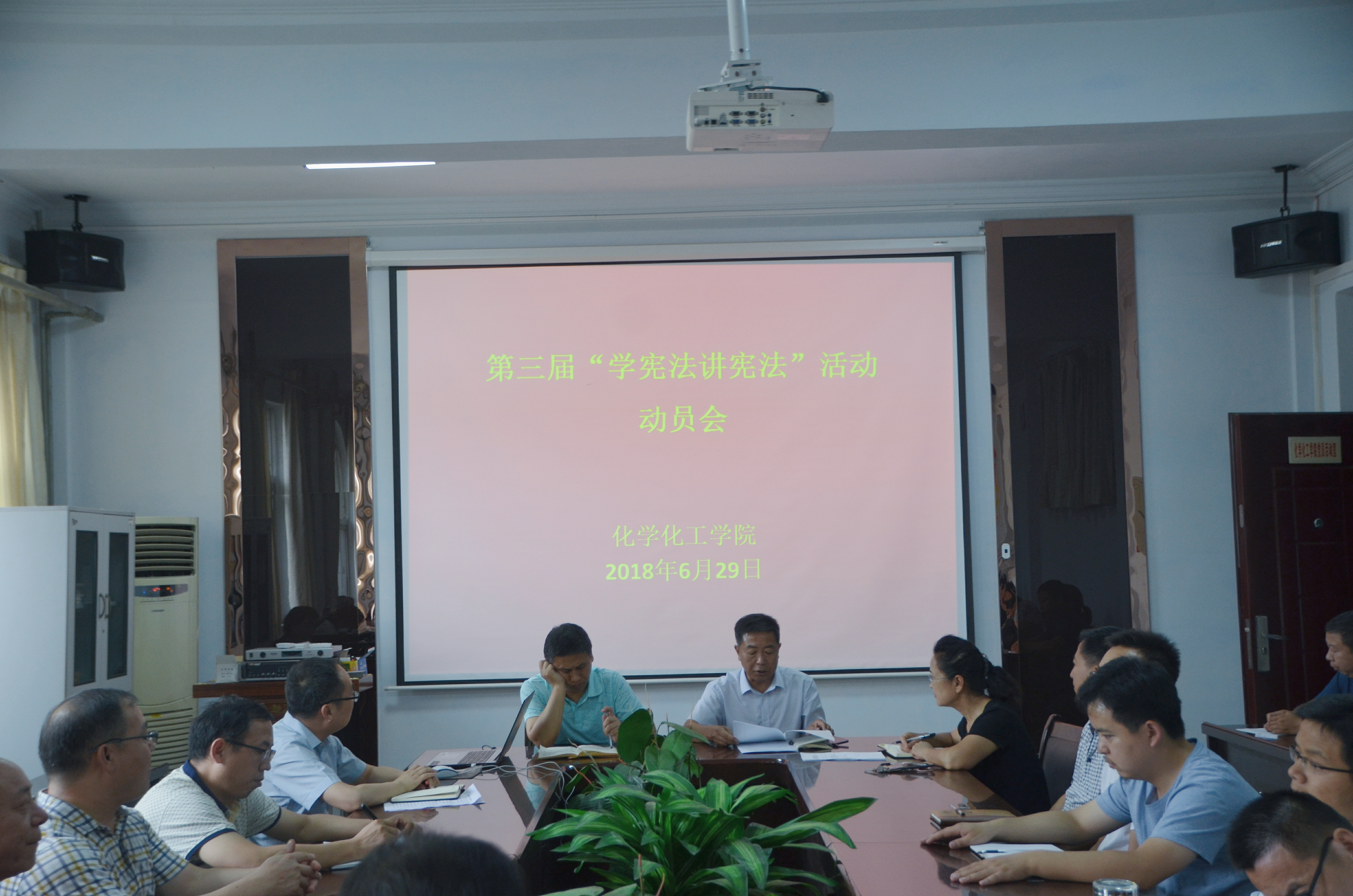 6月29日下午,beat365英国官网网站于文化路校区7号楼会议室召开第三届“学宪法,讲宪法”活动动员会,院党政领导和全体教工参加了会议,会议由院党总支书记韩忠民主持。