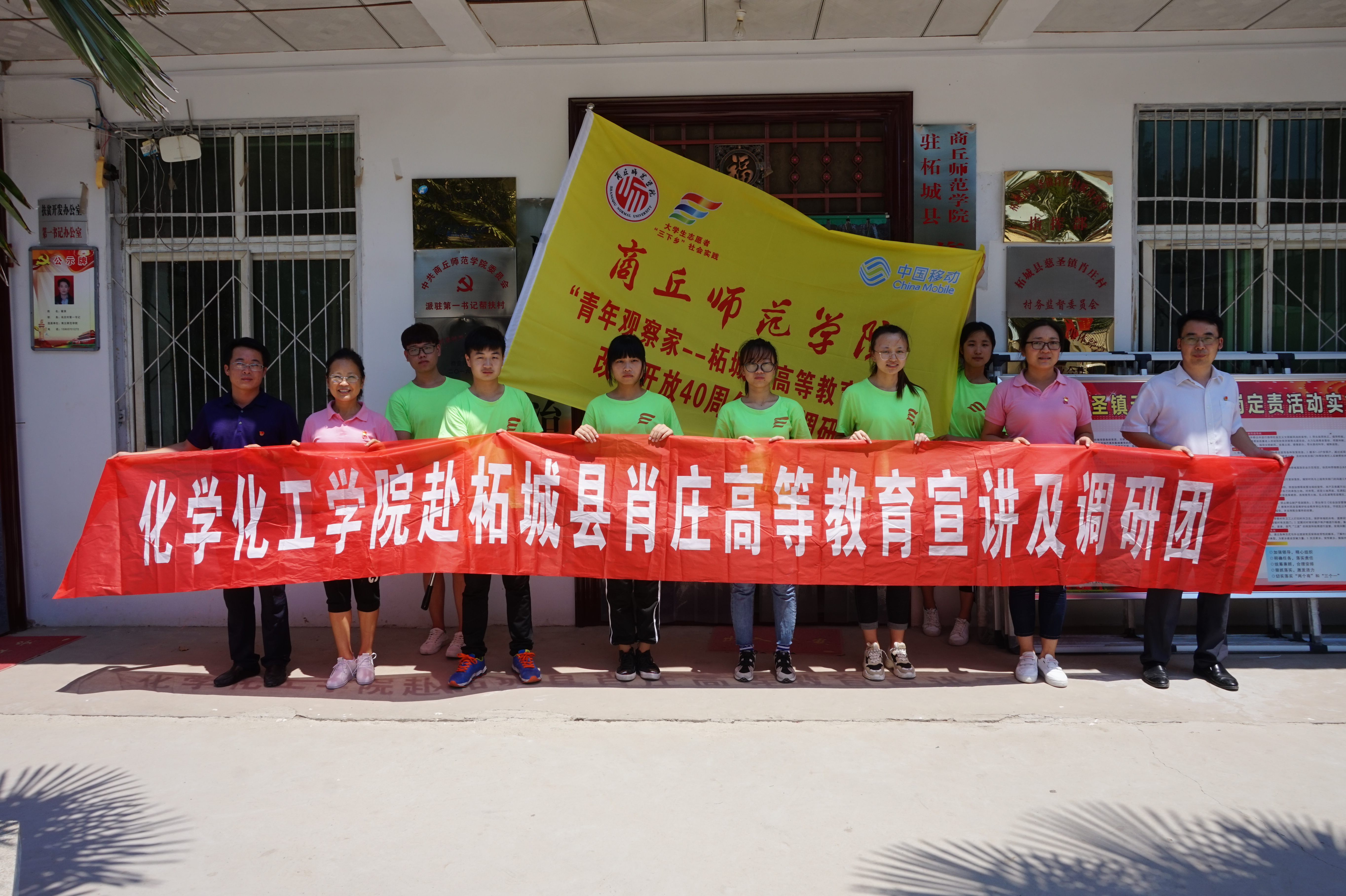 7月16日,beat365英国官网网站赴柘城县肖庄高等教育宣讲及调研团全体志愿者,在“原驻村第一书记”张银堂、院党总支副书记刘瑛、办公室主任姬红彬、团总支书记李龙梅的带领下,前往柘城县肖庄村开展暑假大学生“三下乡”高等教育调研活动。此次活动旨在为探究农村高等教育的现状,发现制约农村高等教育发展的成因并提出可行的解决对策。驻村第一书记翟滨和邵永杰老师进行了热情接待。