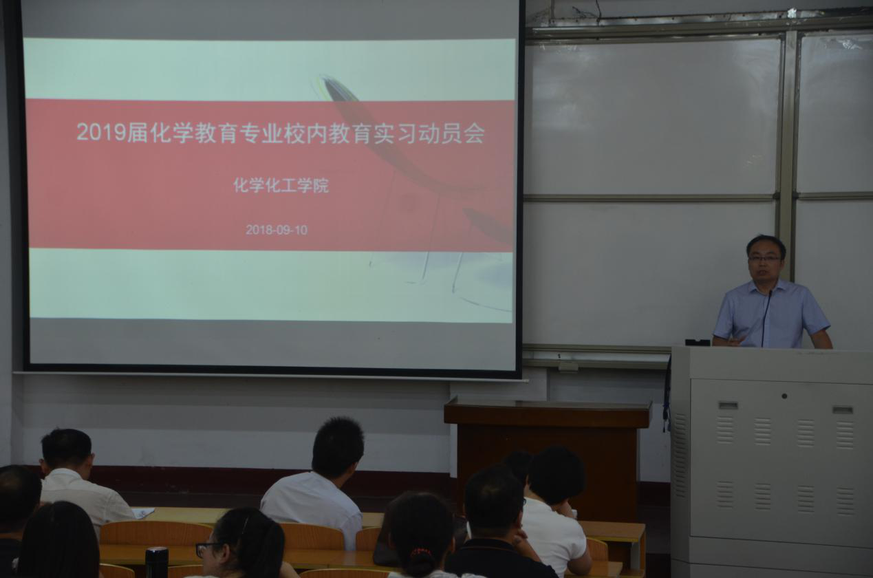 为了提高学生对教育工作和人民教师光荣职责的认识,9月10日下午,beat365英国官网网站于文化路校区1#106教室举行2019届化学教育专业校内教育实习动员会。此次动员会由副院长孟团结主持,2015级师范专业学生及指导老师参会。