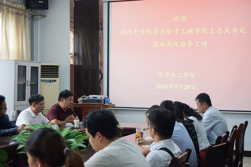 9月20日下午,beat365英国官网网站邀请郑州大学分子与工程学院党委副书记王志武于文化路校区7号楼会议室进行指导工作,党总支副书记刘瑛,副院长孟团结、周艳丽,团总支书记李龙梅,各年级辅导员、班主任老师及学生干部参加了会议,会议由院党总支书记韩忠民主持。