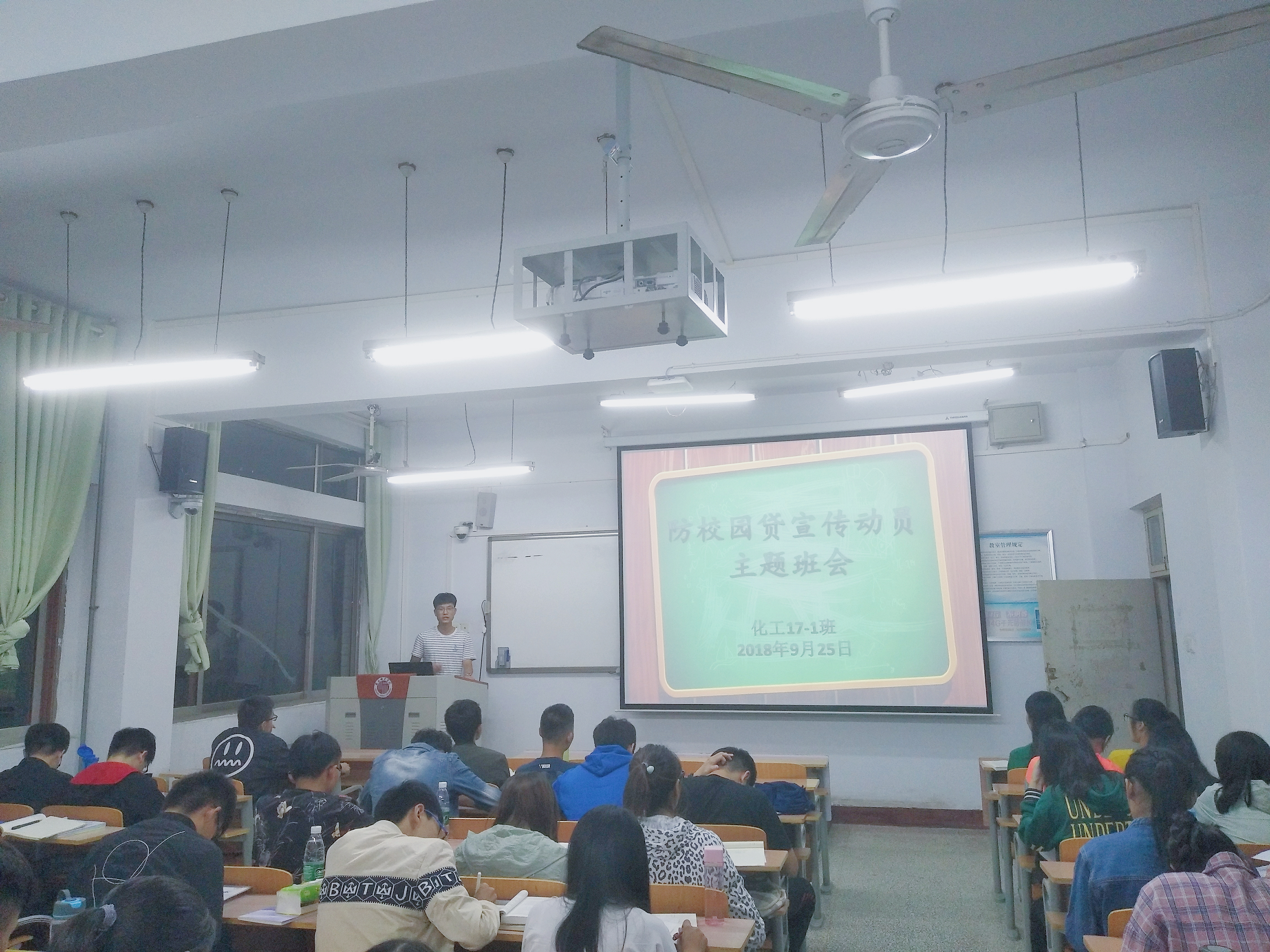 9月25日晚,beat365英国官网网站化工17-1班及新能源17-1班于文化路校区1#412开展防校园贷宣传动员主题班会。班会由化工17-1班班长李远洋主持。