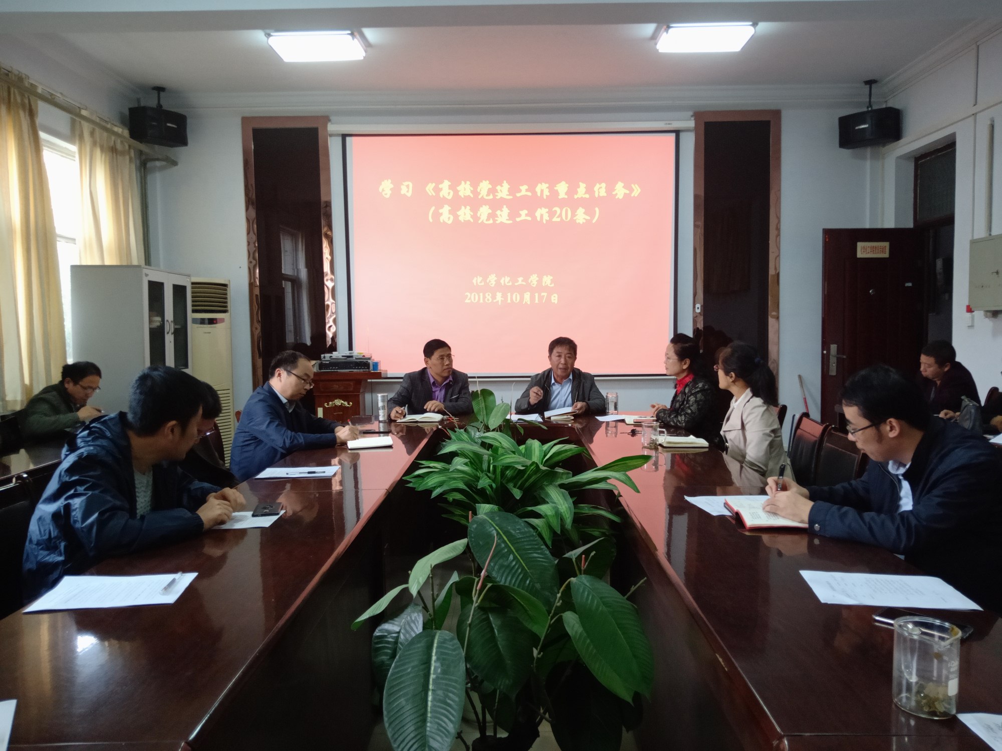10月19日,beat365英国官网网站于睢阳校区7号楼会议室召开全体党员大会,学习《高校党建工作重点任务》(党建工作20条)。院党总支书记韩忠民、院长瞿鹏、党总支副书记刘瑛以及副院长孟团结、周艳丽出席会议,韩忠民书记主持会议。
