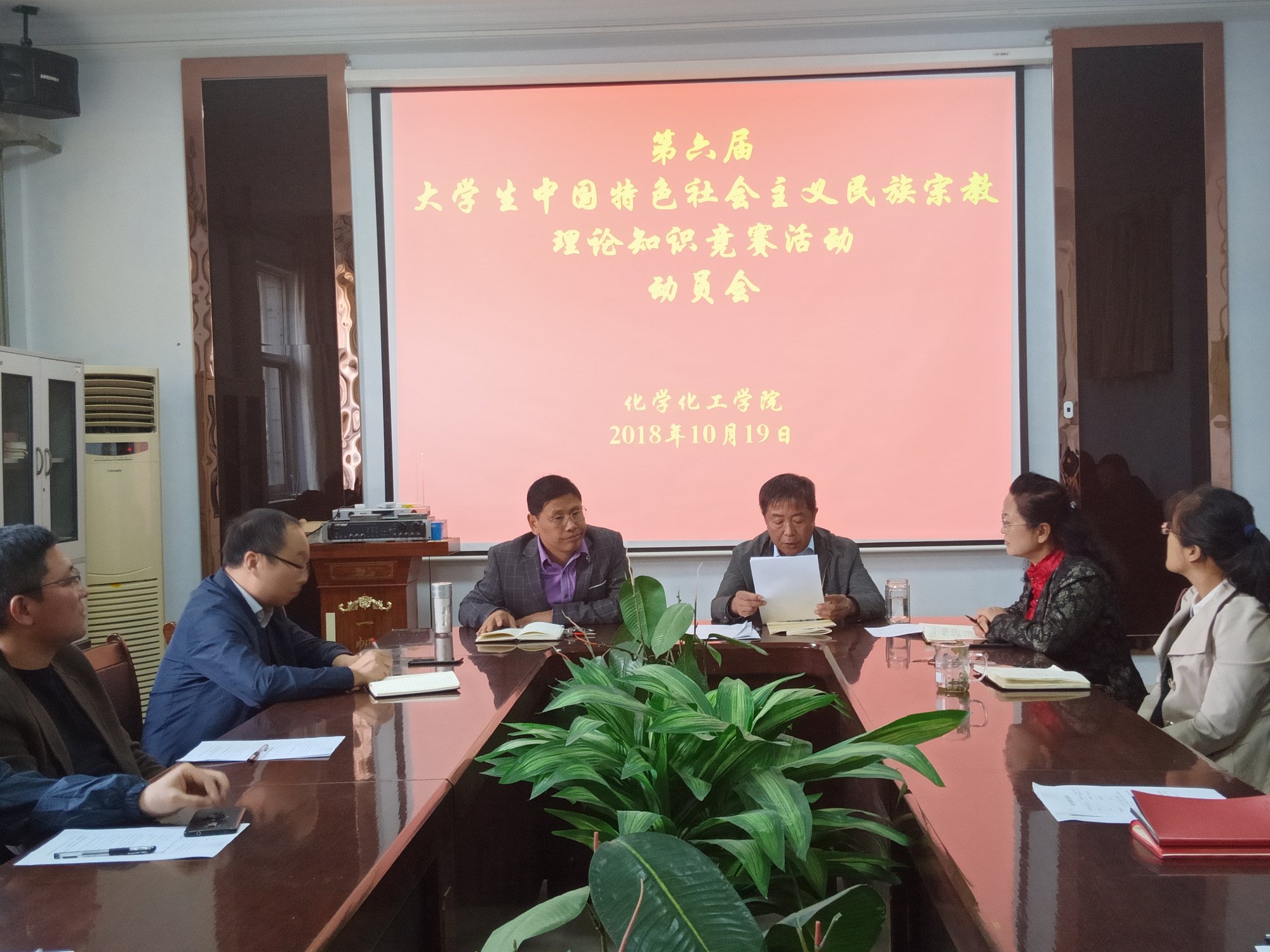 10月19日下午,beat365英国官网网站于睢阳校区7号楼会议室召开“第六届大学生中国特色社会主义民族宗教理论知识竞赛活动”动员会,会议由院党总支书记韩忠民主持,院长瞿鹏、党总支副书记刘瑛、副院长孟团结、周艳丽出席,全体教职工参加会议。