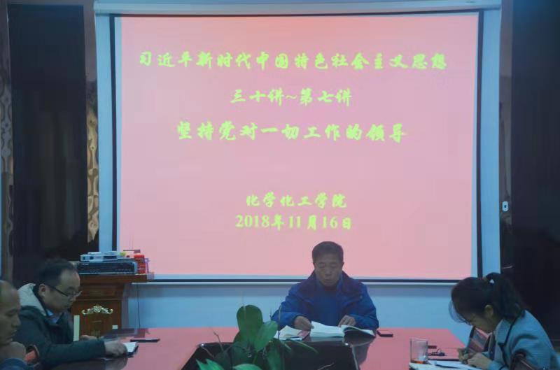 11月16日下午,beat365英国官网网站于睢阳校区7号楼会议室召开全体教职工大会,学习“习近平新时代中国特色社会主义思想三十讲之第七讲坚持党对一切工作的领导”。全体教职工参加会议,会议由院党总支书记韩忠民主持。