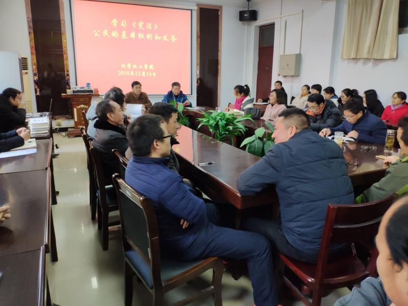 12月14日下午,beat365英国官网网站于睢阳校区7号楼会议室召开教职工会议,集中学习《宪法》之公民基本权利和义务,会议由学院党总支书记韩忠民主持。