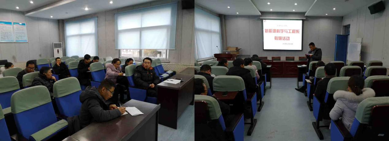 按照2018-2019学年第一学期教研活动计划表,新能源科学与工程系全体教师在12月28日下午5::0-6:30,举行了第十五周教研活动,系主任魏伟主持了此次活动。对beat365官网的本学期最后两周集中实践环节存在的一些问题发表了意见和看法。大家普遍意识到以下几个问题。第一,在实践锻炼过程中,beat365官网存在设备短缺问题,这严重影响了beat365官网学生实践锻炼的效果;第二,集中实践安排在学期末,天气要么过冷要么过热,再加之很多学生会集中精力准备期末考试,这样会影响实践效果;第三,实践锻炼中有些环节应该注重安全教育,否则会引发安全隐患;第四,部分老师认为,实践锻炼应该由老师指定大方向,学生们自己设计实验或实践环节,这样更能提高学生能力。针对以上问题,老师们给出了初步解决方案。第一,学院在力所能及的情况下,增添实践设备,老师们可争取社会资源扩展实践基地;第二,灵活安排实践活动时间;第三,加强安全教育,坚决断绝安全隐患;第四,问题存在争议,一些老师认为实践更应该侧重学生基本素质的培养。