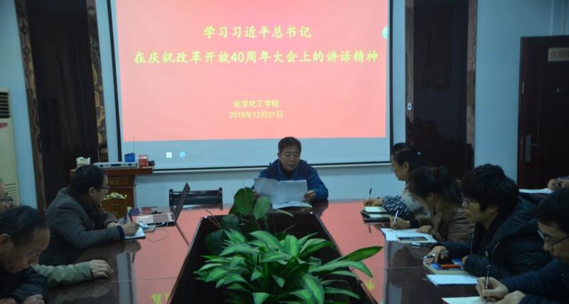 12月21日下午,beat365英国官网网站于睢阳校区7号楼会议室召开全体教职工大会,学习“习近平总书记在庆祝改革开放40周年大会上的讲话精神”。全体教职工参加会议,会议由党总支书记韩忠民主持。