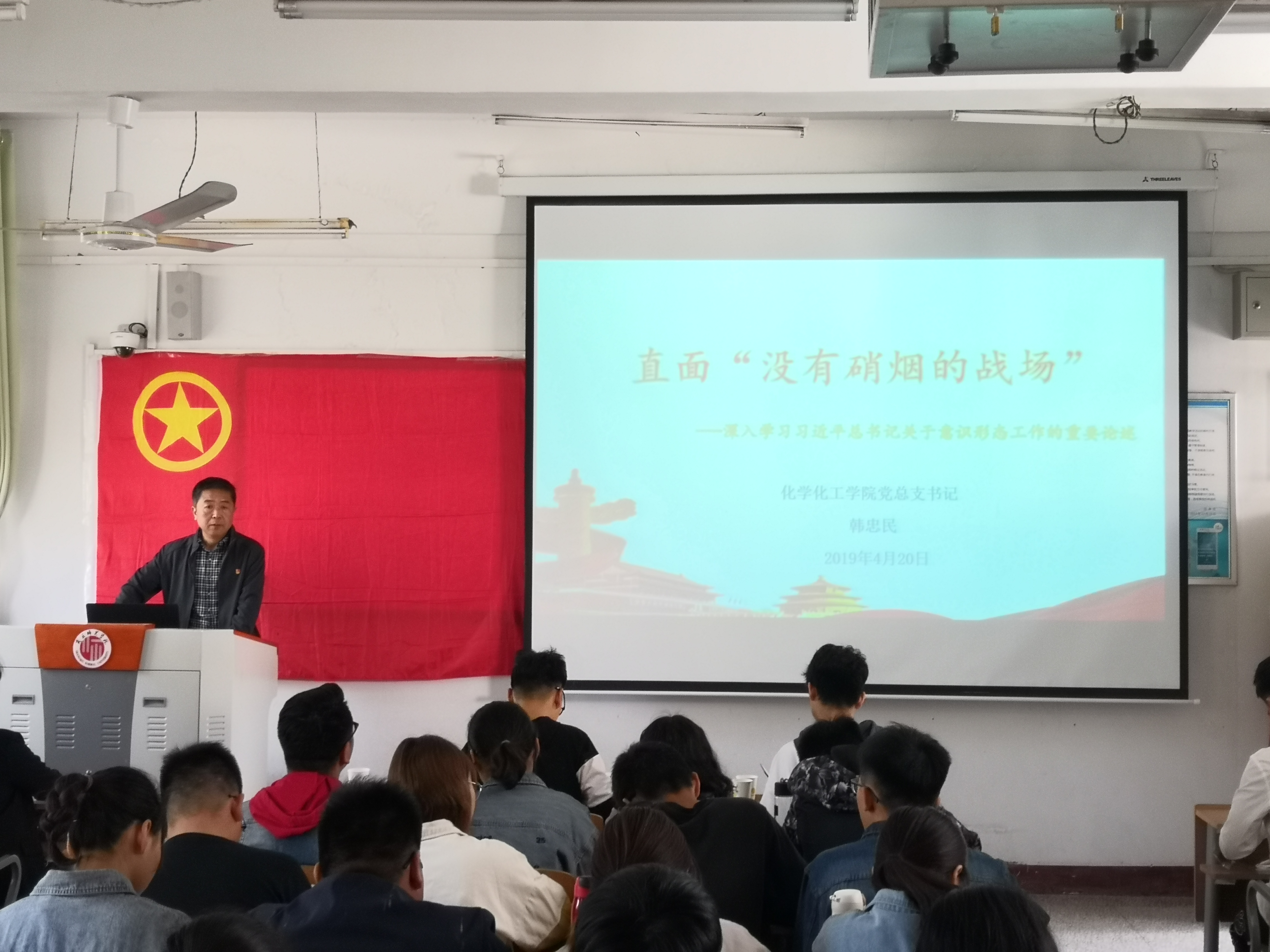 为了提升青马学员的思想政治素质,帮助其了解意识形态的重要性,成长为中国特色社会主义事业的合格建设者和可靠接班人,4月20日上午,beat365英国官网网站于睢阳校区1号楼409教室举行了培训班第一讲“直面没有硝烟的战场”,第一期青马培训班全体学员参加,党总支书记韩忠民主讲。