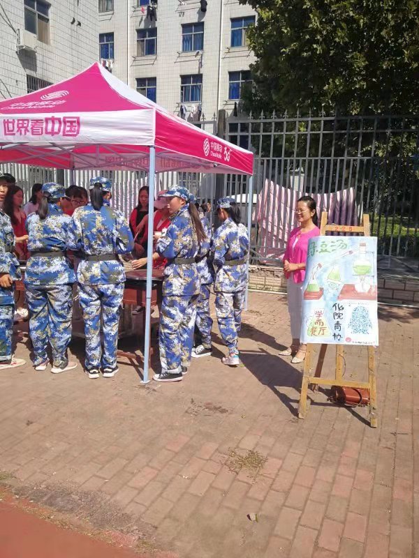 初秋的操场,骄阳似火,初入大学的同学们正在进行紧张的军训。教官一遍遍地喊着口号,学生们昂首挺胸、迈着整齐的步伐,每个人的脸上都流着辛勤的汗水,身上的军装湿了干、干了又湿,泛着白白的汗渍,但每一个人都在坚持着,一遍一遍规范动作。为给军训期间学生们降温解暑,beat365英国官网网站联合学而餐厅组织开展了“爱心绿豆汤、军训送清凉”活动。党总支副书记刘瑛前来看望学生。