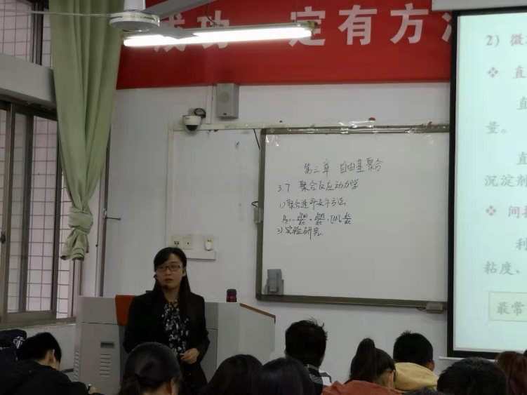 本次公开课以“自由基聚合动力学”为例进行课堂展示,主要讲解了微观动力方程的推导过程。本次公开课设计知识点回顾、重难点分析及重难点讲解环节,采取板书和多媒体辅助等教学手段,以问题为导向,采用讲解、提问等教学方法,及时抓捕学生课堂反馈信息,形成有效师生互动。本次公开课进展顺利,高效地实现了课堂教学目标,充分体现“以学生为主体,以教师为主导”的课堂教学理念,课堂上同学们参与度高,学生学习氛围和学习效果较好。