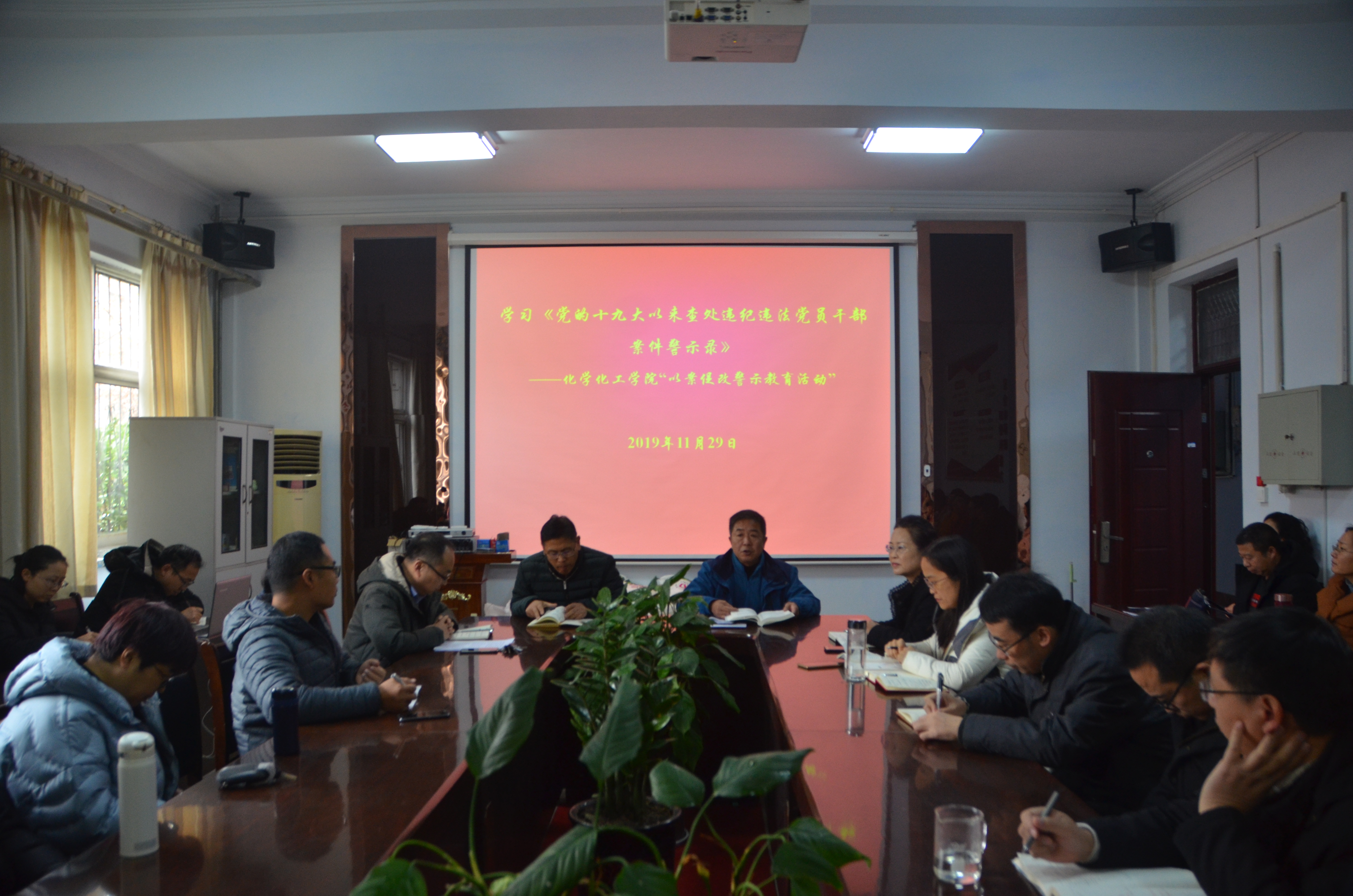 为贯彻党中央关于在全党“不忘初心,牢记使命”主题教育中深入开展警示教育、深刻剖析反面教材典型,以案例明法纪、促整改,推进主题教育走深走实,11月29号下午,beat365英国官网网站于睢阳校区7号楼会议室组织学习《党的十九大以来查处违纪违法党员干部案件警示录》以案件促整改警示教育。全体教职工参加,会议由党总支书记韩忠民主持。