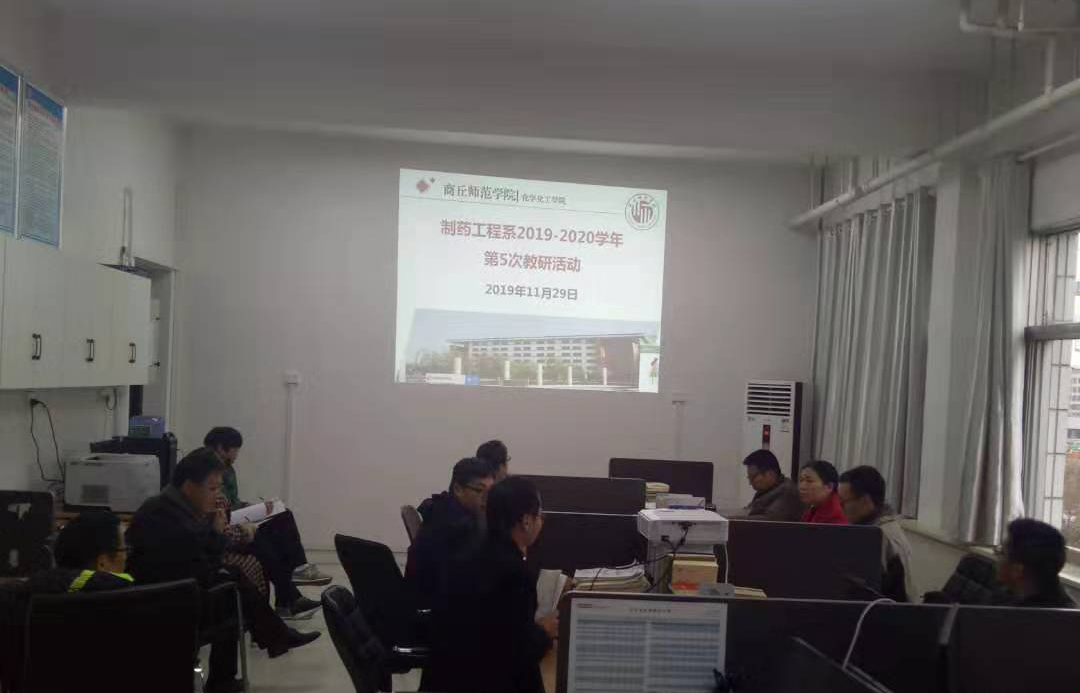 2019年11月29日下午,制药工程系在化学实验楼416室召开2019-2020学年第一学期第5次教研活动。教研活动由系主任王涛主持,制药工程系全体老师参加此次活动。
