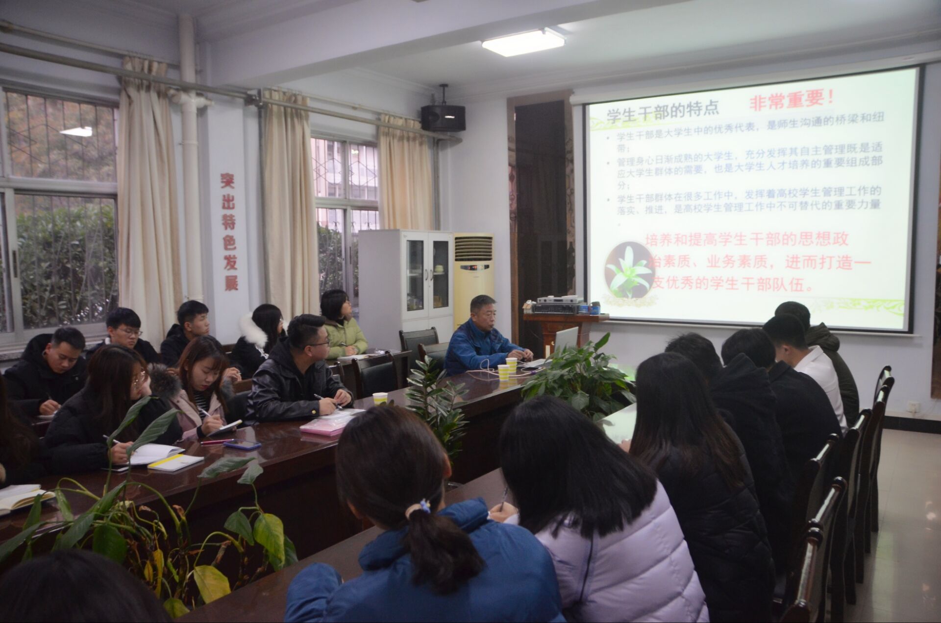 为提高学生干部的自我管理能力,打造一批优秀的学生干部队伍,12月6日下午,beat365英国官网网站于睢阳校区7号楼院会议室召开团总支、学生会工作例会暨团学干部培训,党总支书记韩忠民、副书记刘瑛和团总支书记李龙梅出席会议,团总支、学生会全体成员参加,会议由李龙梅主持。