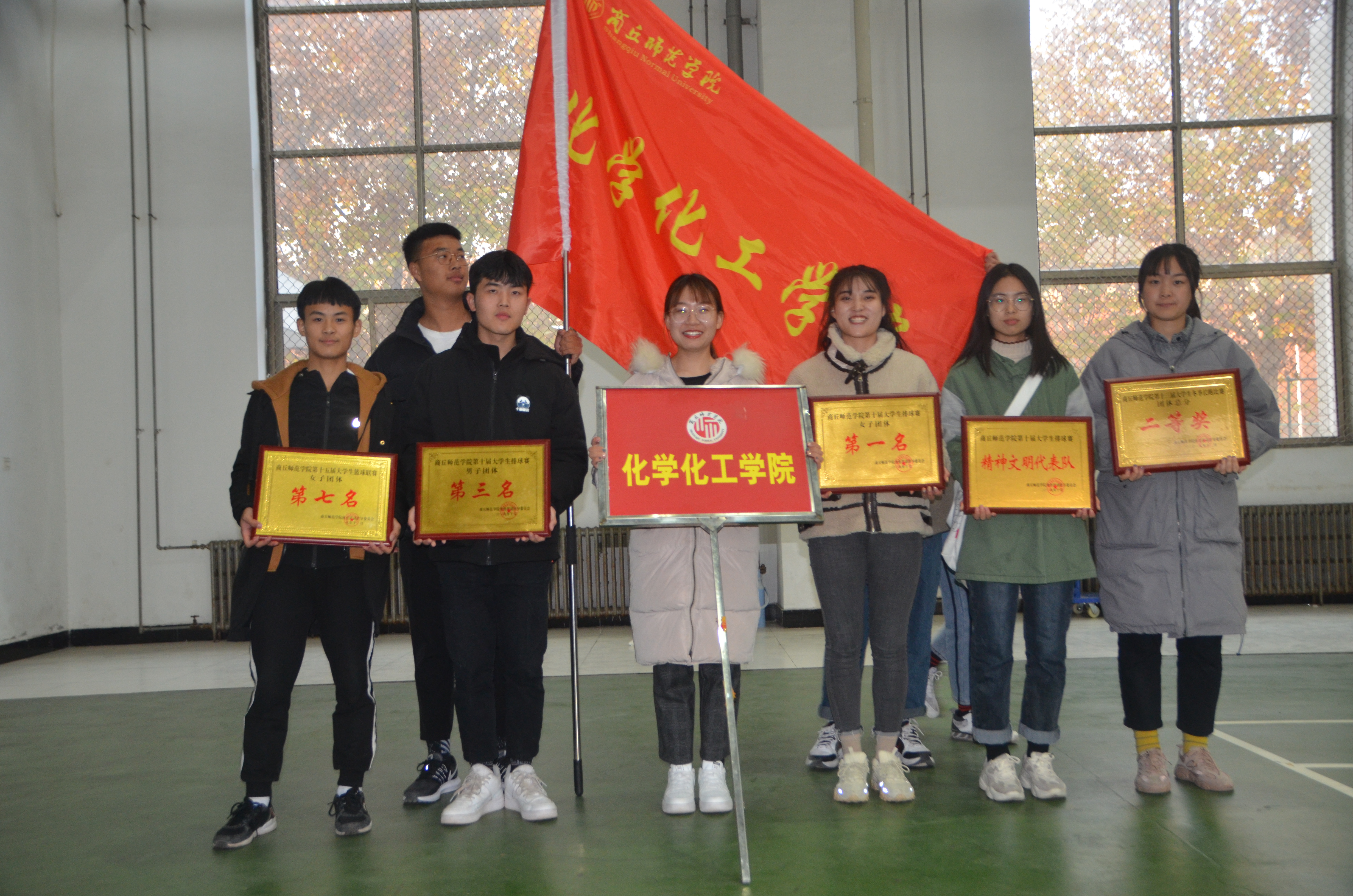 比赛还未开始,赛场上的气氛已经开始紧张起来,观众们翘首以盼期待比赛,各学院啦啦队情绪高涨,服务人员也已做好充分的准备。伴随着一声发令枪响,beat365英国官网网站的参赛学生冲上跑道,他们挥洒汗水,奋力拼搏,在整个比赛中始终保持着积极昂扬的精神状态。场外的啦啦队高亢的呐喊声扣人心弦,给参赛学生带来了激情,将比赛推向高潮。冲刺阶段,化院的运动健儿们不服输、不言弃,最终,取得了团体总分第三名(二等奖)的好成绩,在众多参赛选手中脱颖而出摘得九个证书。