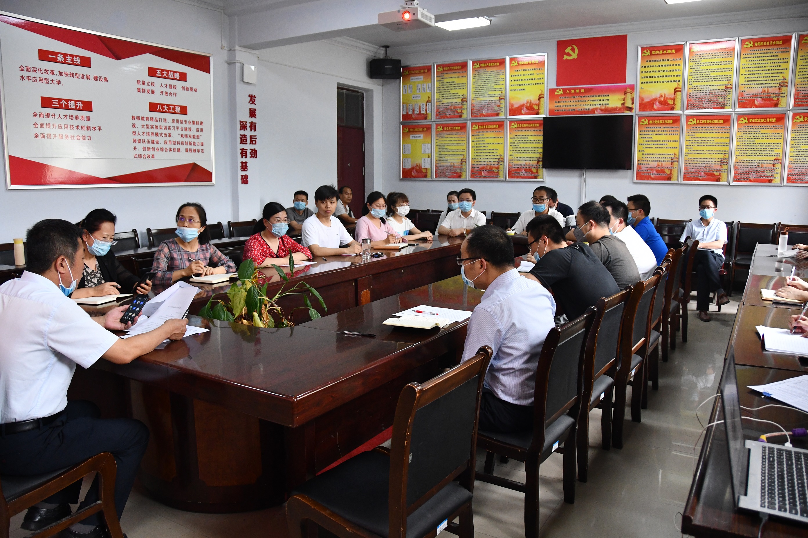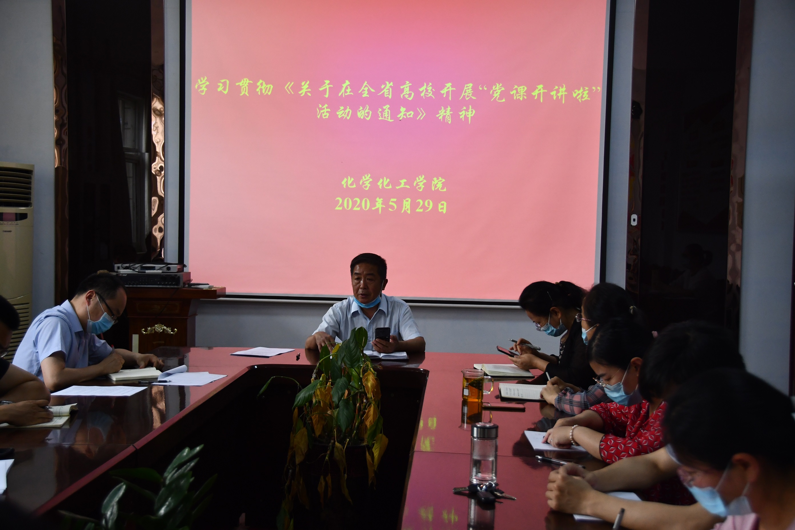 会上,大家认真学习了“党课开讲啦”活动工作方案,了解了活动的重要意义以及时间安排、讲授内容、授课人选、党课形式、成果运用等五个方面的主要内容。韩忠民对于本次活动提出三点要求:一是各党支部要精心组织,提前策划。可通过“三会一课””、主题党日活动等形式开展,结合本支部实际情况,创新党课形式,增强实效性和时代感;二是党课内容要贴近实际,注重实用实效。开讲之前要充分了解党员需求和思想工作实际,结合学校周边党性教育资源,通过现实活教材,多讲“身边事”,阐释习近平新时代中国特色社会主义思想在中原大地的生动实践。三是坚持抓常抓长,做好党员日常教育工作。将本次活动转化成为党员教育经常性工作,将上党课融入日常、做在经常,边讲边学边受教育。