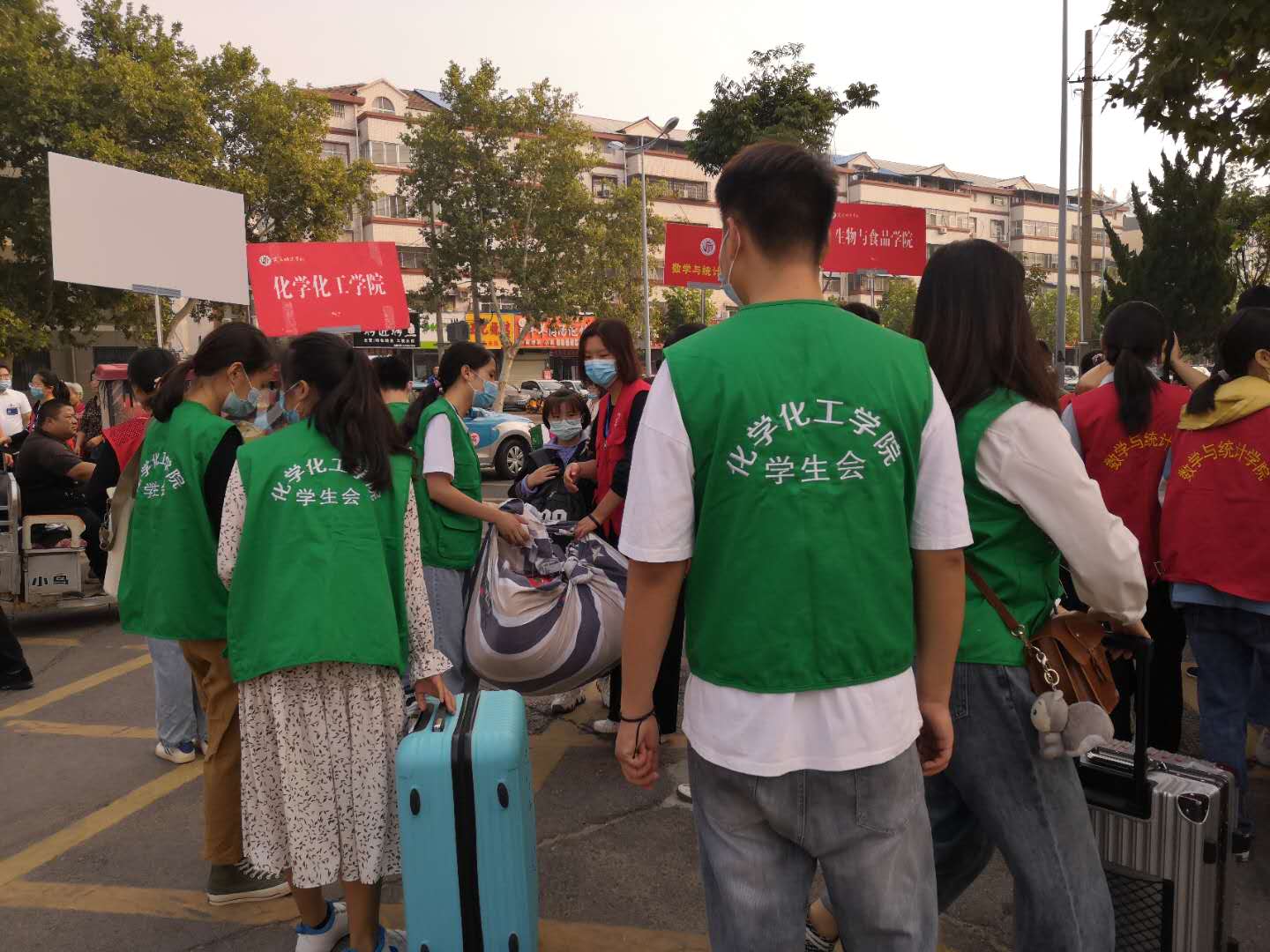 由于疫情原因,新生家长不能入校。为了让新生对接待工作百分百的满意,报到期间,beat365英国官网网站党总支书记韩忠民、党总支副书记刘瑛以及辅导员老师在校门口亲自指导,志愿服务人员一对一服务,为新生搬运行李、办理报到手续、介绍校园、解答疑惑,确保迎新工作顺利完成。