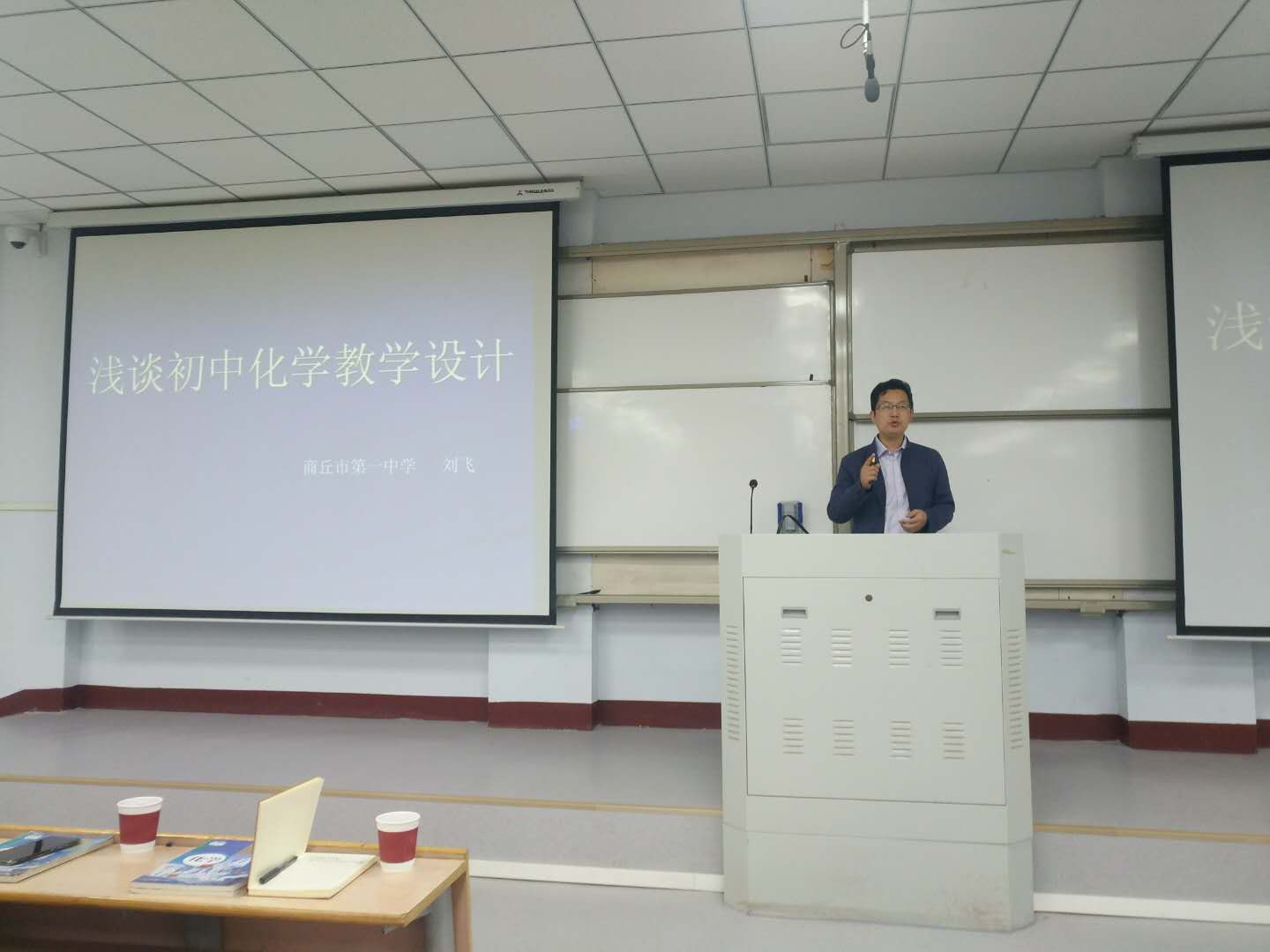 首先,商丘市第一中学的刘飞老师为全体学生做了关于“如何撰写教学设计”的专题讲座。刘老师从“什么是教学设计,为什么要进行教学设计”讲起,结合中学化学经典教学案例阐述了教学设计的基本程序以及如何做好教学设计等问题。讲座结束后,2017级何梦含和张升豪两位同学分别进行了说课汇报,10位坊主从说课内容、才艺展示和妆容仪表等方面分别进行了精彩点评和指导,使两位同学受益匪浅。最后,各位坊主分别为本坊学生确定课题,布置教学设计环节的各项任务和时间安排,让大家学习掌握中学化学课程标准,并在此基础上做好教学设计的撰写工作。