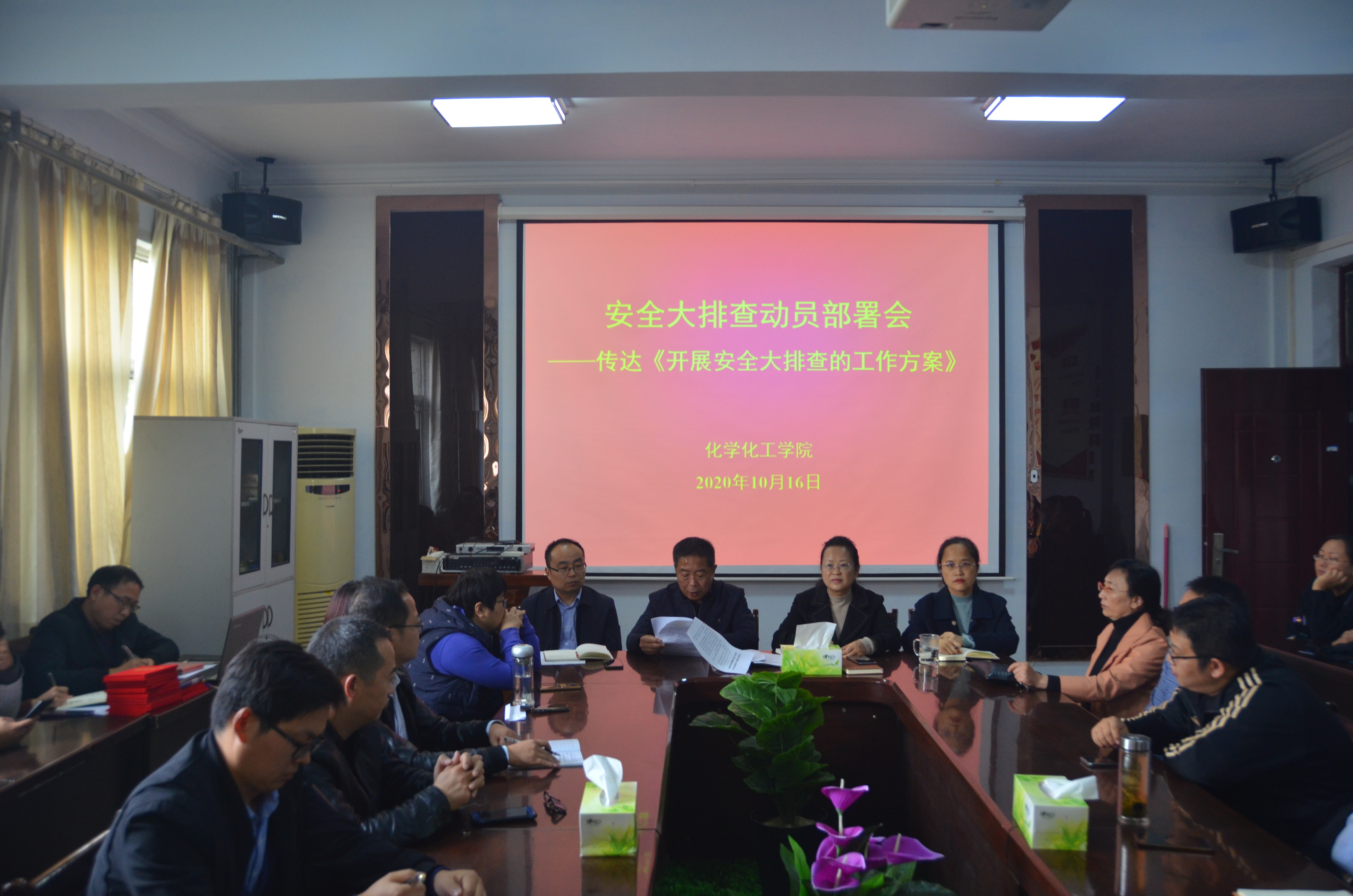 “风险与隐患同存在,安全与生命同价值”。为深入学习贯彻习近平总书记关于安全生产的重要论述,进一步压实安全责任,全面排查校园安全风险,消除危险隐患,有效防范和坚决遏制各类安全事故的发生。2020年10月16号,beat365英国官网网站于睢阳校区7号教学楼会议室召开了“安全排查动员大会”。会议由党总支书记韩忠民主持,全体教职工参加。