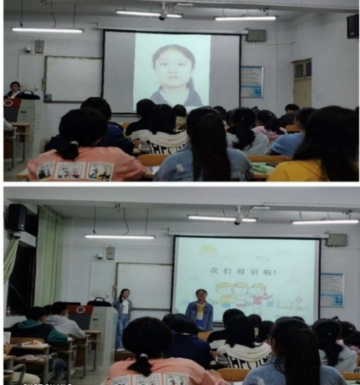 韩华博老师向来自全国各地的同学表示热烈欢迎,当一名同学高中时期的照片出现在屏幕上时,轻松活跃的气氛随之而来。猜着屏幕上的照片会是哪位同学,全班同学依次在班上进行自我介绍,现场氛围热烈,笑声不断,掌声不断。最后韩华博老师对班级新同学寄予期望,鼓励同学们在大学期间脚踏实地,仰望星空,并叮嘱同学们让彼此的相遇变得更加美好!