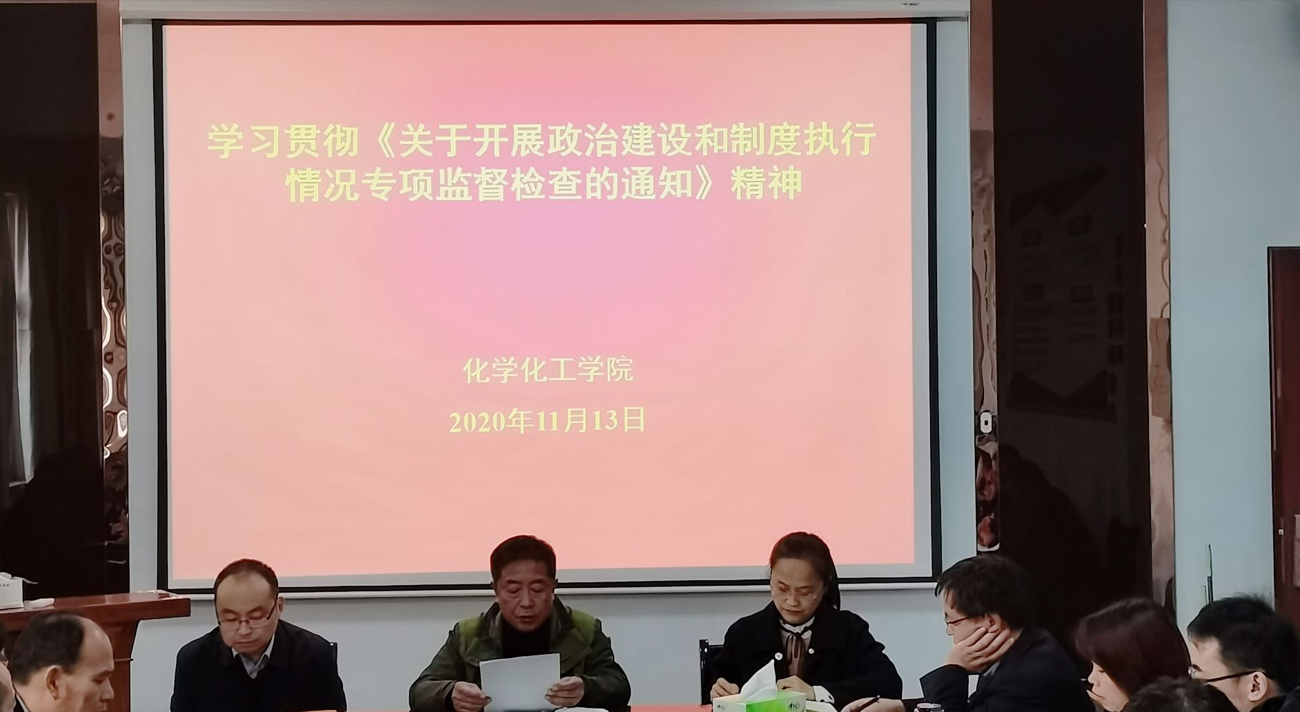 2020年11月13日,beat365英国官网网站于睢阳校区7号楼会议室组织学习贯彻学校《关于开展政治建设和制度执行情况专项监督检查的通知》精神。