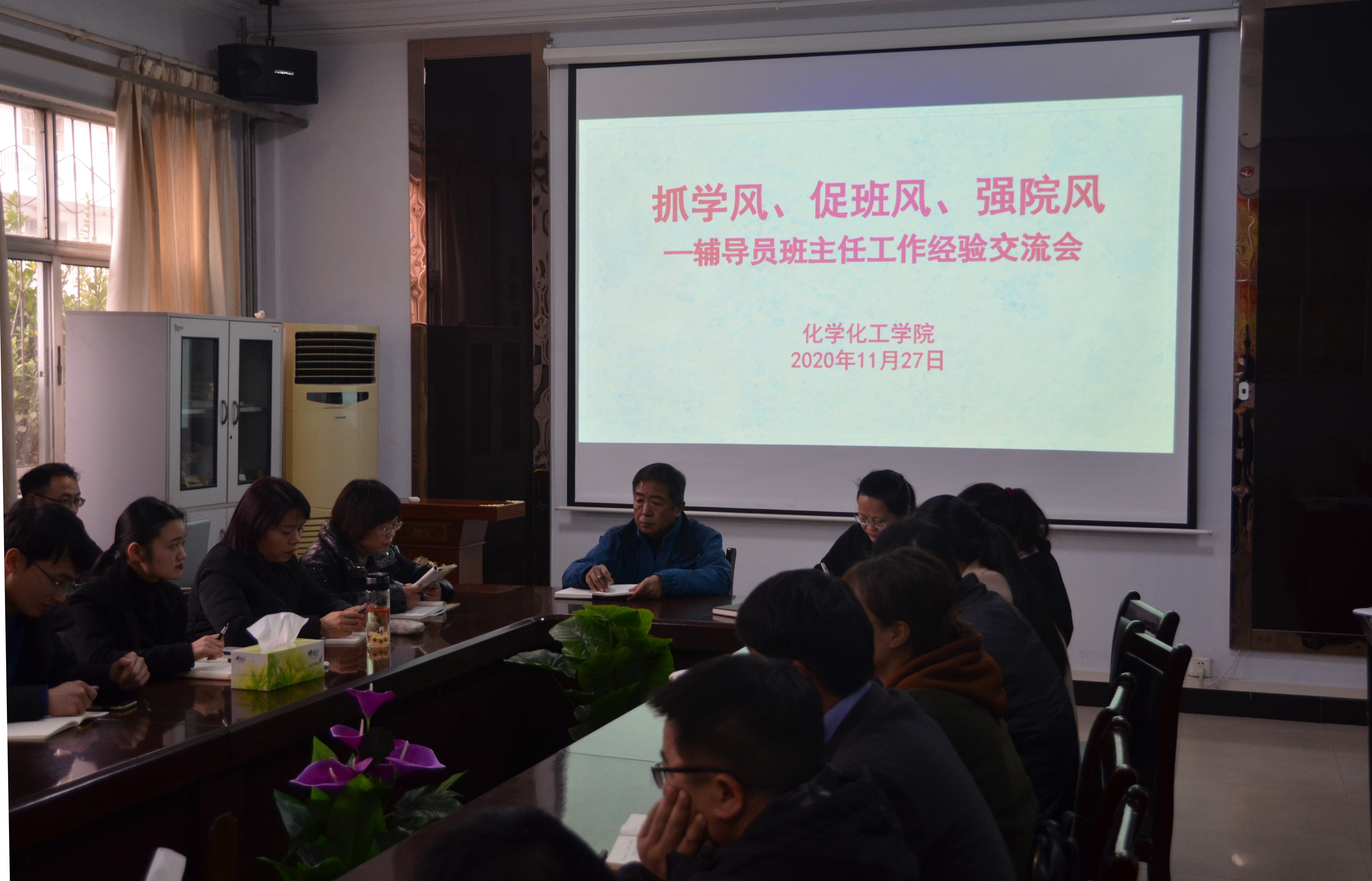 2020年11月27日下午,beat365英国官网网站在睢阳校区7号楼会议室召开“抓学风、促班风、强院风--辅导员班主任工作经验交流会”,院党总支书记韩忠民、副书记刘瑛、全体辅导员和班主任参加。