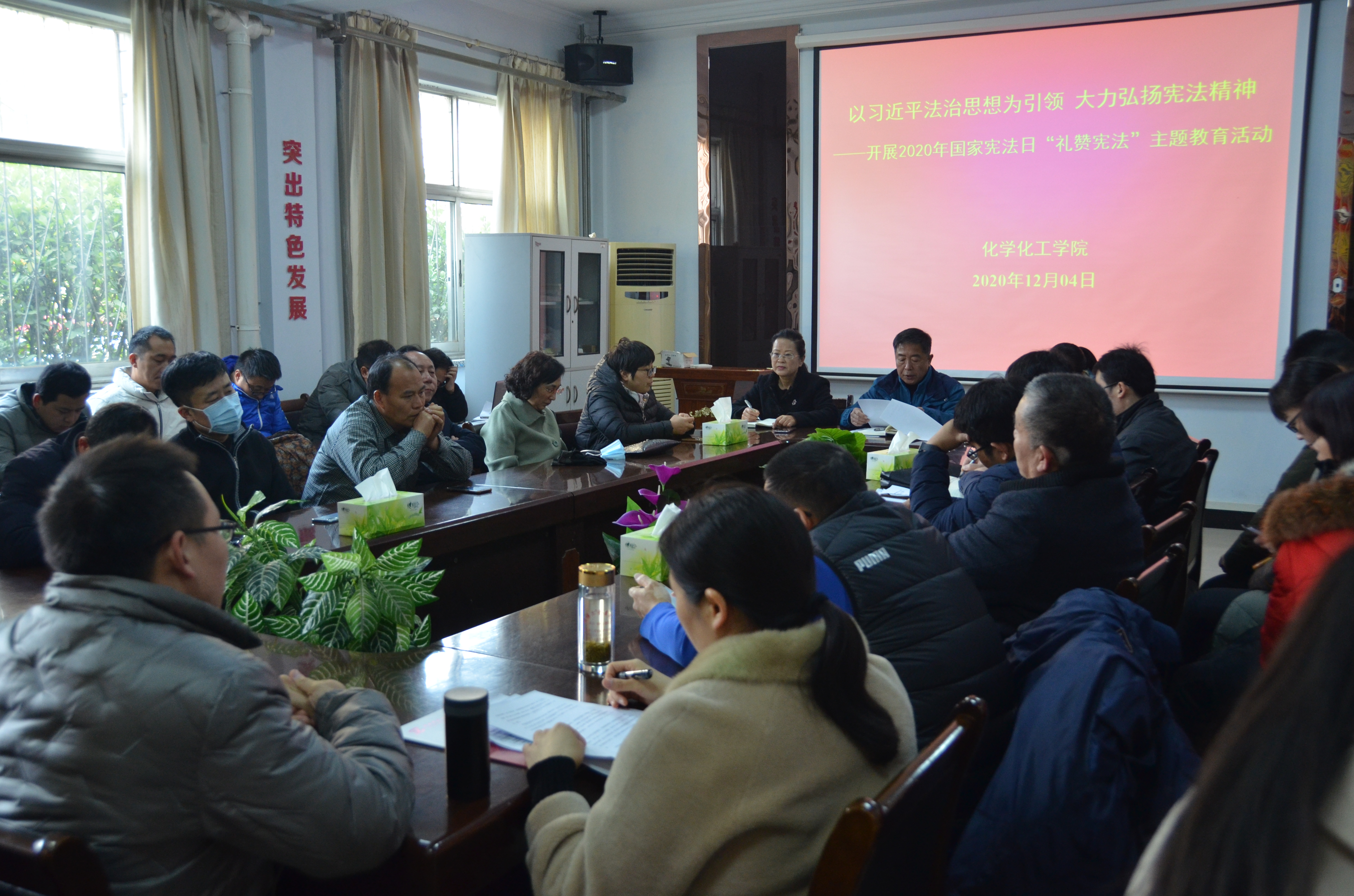 为深入学习宣传习近平法治思想,弘扬宪法精神,维护宪法权威,进一步提高学院教师的法治思维,增强思想自觉,2020年12月4日,beat365英国官网网站于睢阳校区7号楼会议室召开教职工全体会议,利用专题学习的形式,开展2020年国家宪法日“礼赞宪法”主题教育活动。会议由beat365英国官网网站党总支书记韩忠民主持,全体教职工参加。