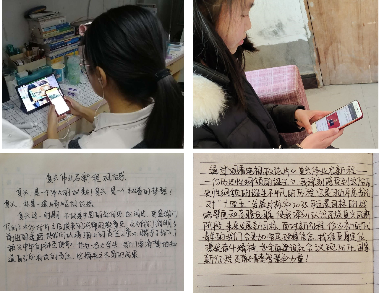 活动过程中,各班负责人带领同学们观看电视政论片《复兴伟业起新程——一份历史性纲领的诞生》,由各个历史阶段最具代表性的人物到事件全景式追朔了中华民族的强国之梦和不懈探索的伟大历程,引发了同学们关于民族复兴的议论和思考。观看完影片之后,同学们开始了积极踊跃的发言:有些同学感受到了中国人民团结一心、共克时艰的精神风貌,有些同学感受到了中国人民一方有难、八方支援的伟大壮举,有些同学表示加强了对健康理念和疫情防控知识的了解和学习,增强了自我防范意识和能力,同时也使自己更加坚定了报国力行的责任心和使命感。