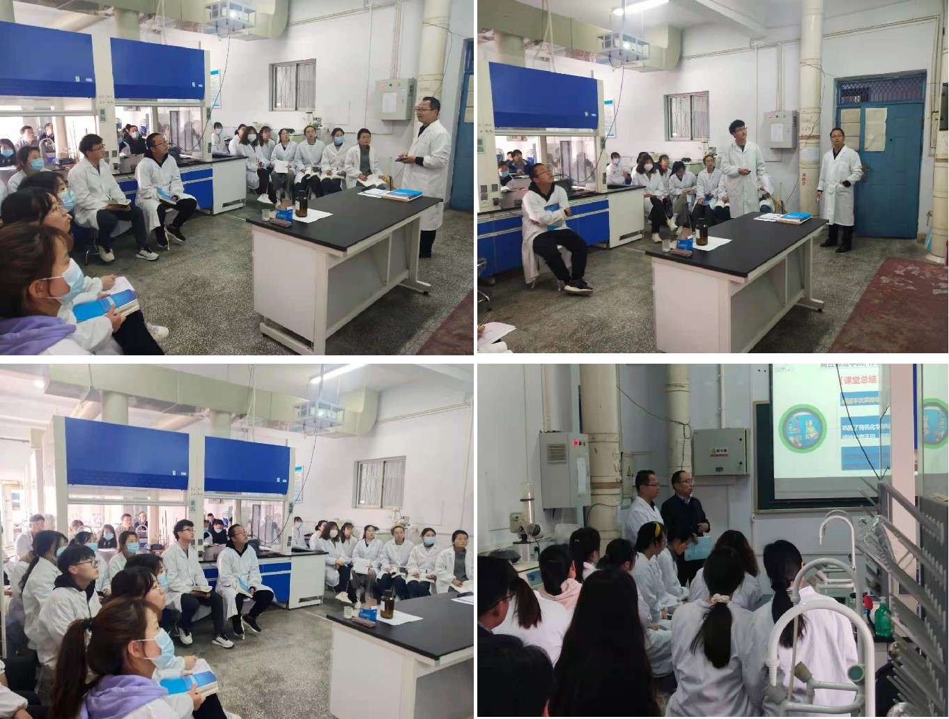 2021年04月26日周一下午第5节课,beat365英国官网网站王涛老师负责的《有机化学实验》课程教学范式改革公开课在睢阳校区化学实验楼407实验室举行,beat365英国官网网站副院长孟团结和学院近两年新入职青年教师观摩了此次公开课。