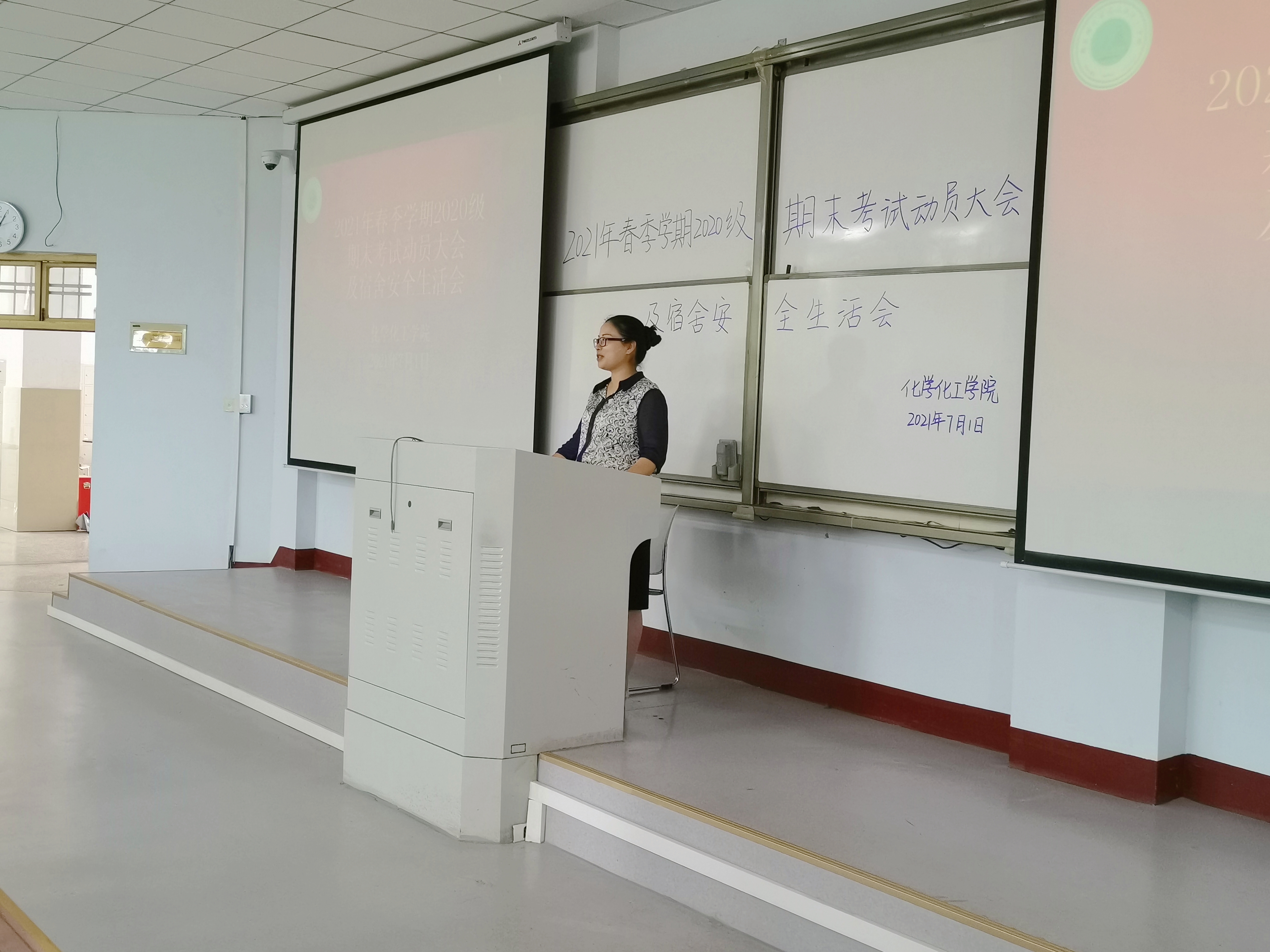 7月1日,beat365英国官网网站在1号楼207教室举行了2021年春季学期期末考试动员大会及宿舍安全生活会。副书记张颜梅、各年级辅导员和全体学生参加了会议。