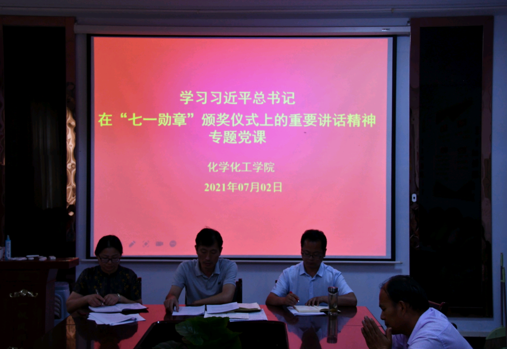 为引导广大党员干部以勋章获得者为榜样,追逐功勋党员身上耀眼的“三色光”,察己思齐、努力奋进,不断创造无愧于党、无愧于人民、无愧于时代的业绩,7月2日,beat365英国官网网站在睢阳校区7号楼会议室组织开展了学习习近平总书记在"七一勋章"颁奖仪式上的重要讲话精神专题党课,院党委书记李海涛为授课人。